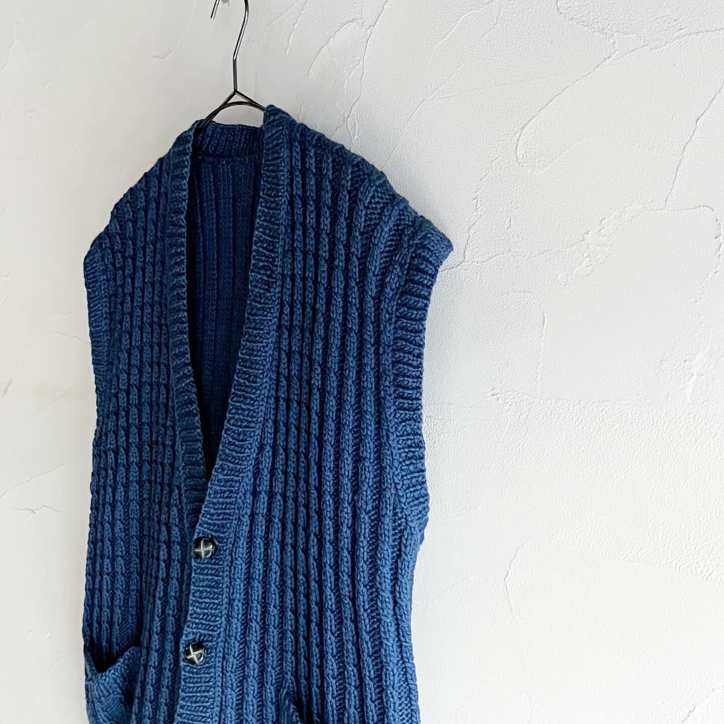 立体感のある鍵編みが魅力的なニットベストです。カットソーやスウェットとレイヤードしてお召し頂けます。