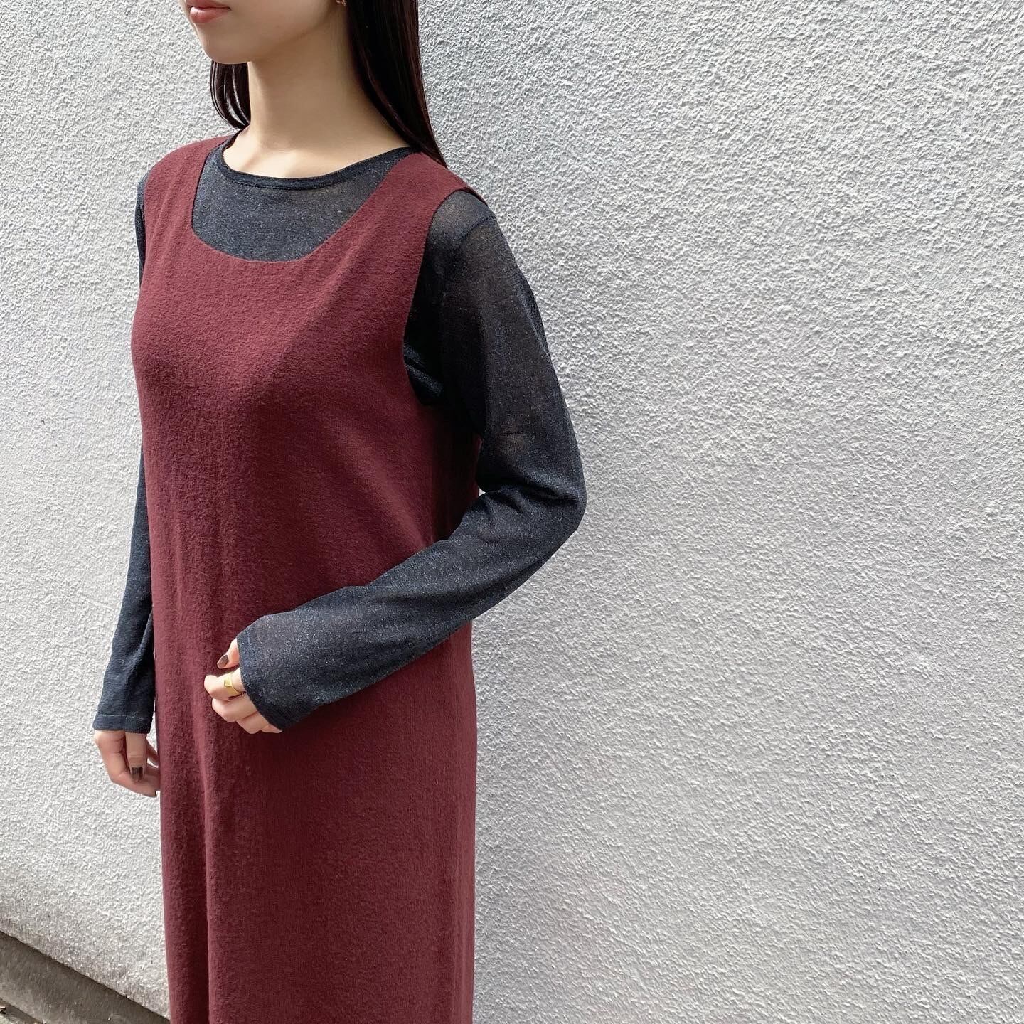 柔らかいウール生地のワンピースです。インナーを仕込むのはもちろん、ジャケットと合わせたりスウェットを被りスカートのようにお召し頂くのも素敵です。