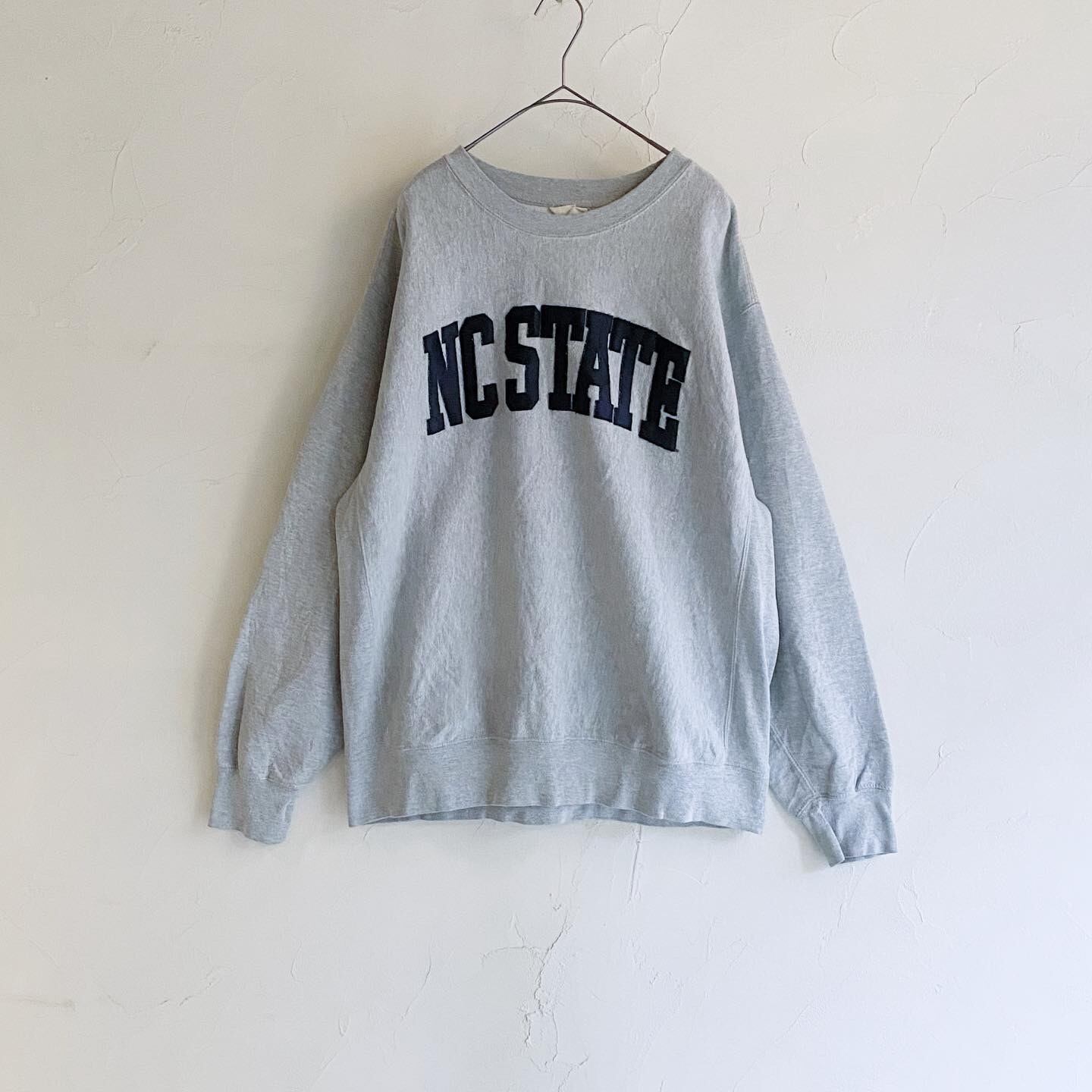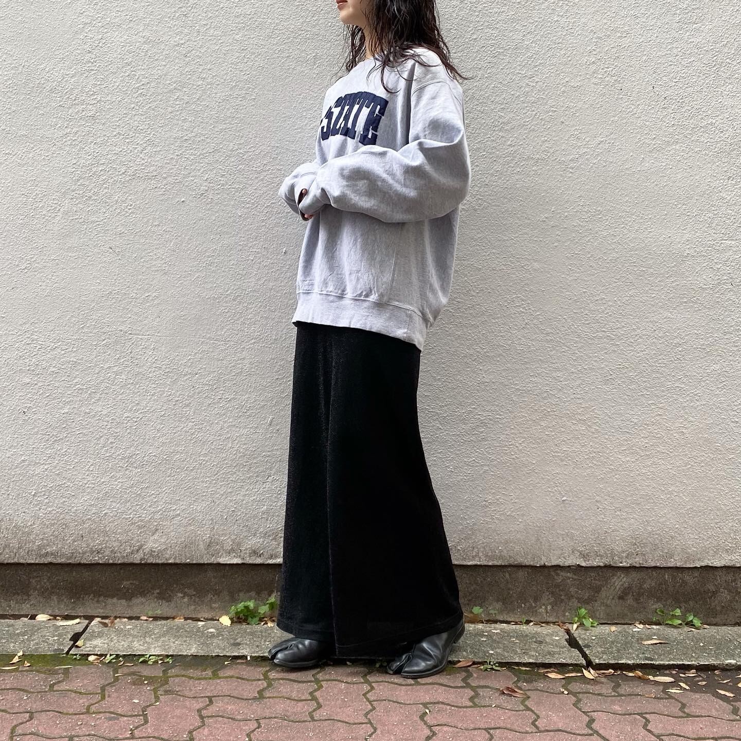 ネイビーのロゴが落ち着いた雰囲気のスウェットです。そこまで厚手では無いものの十分に暖かくお召し頂けます。