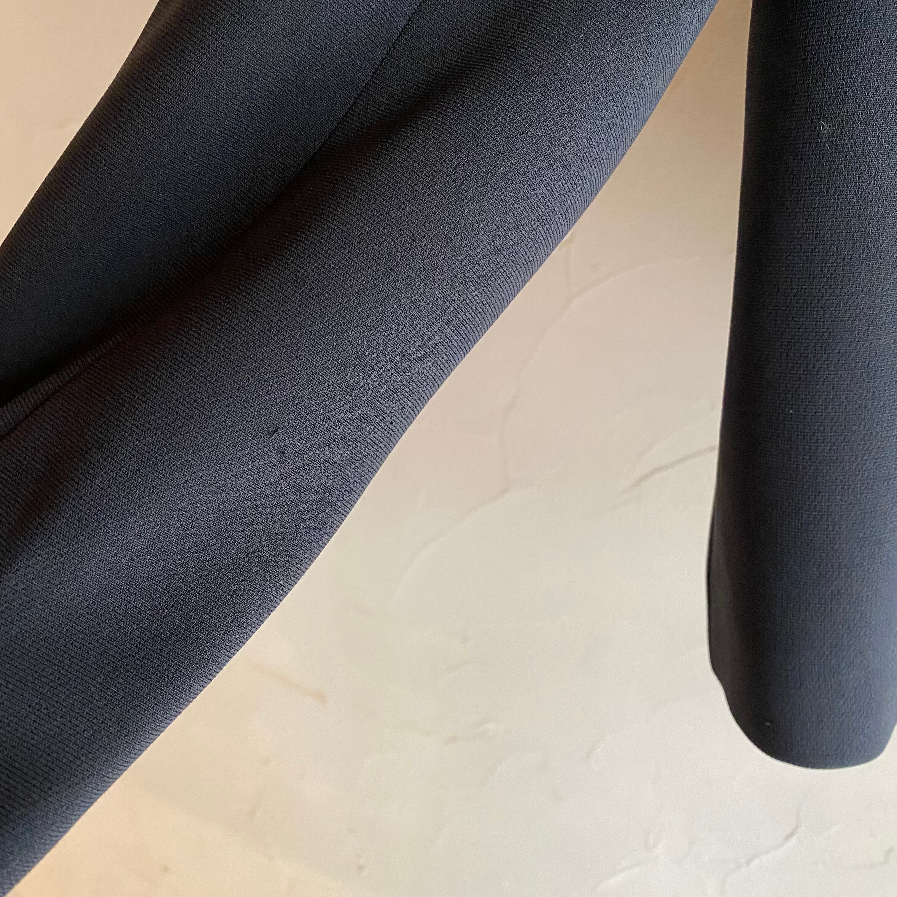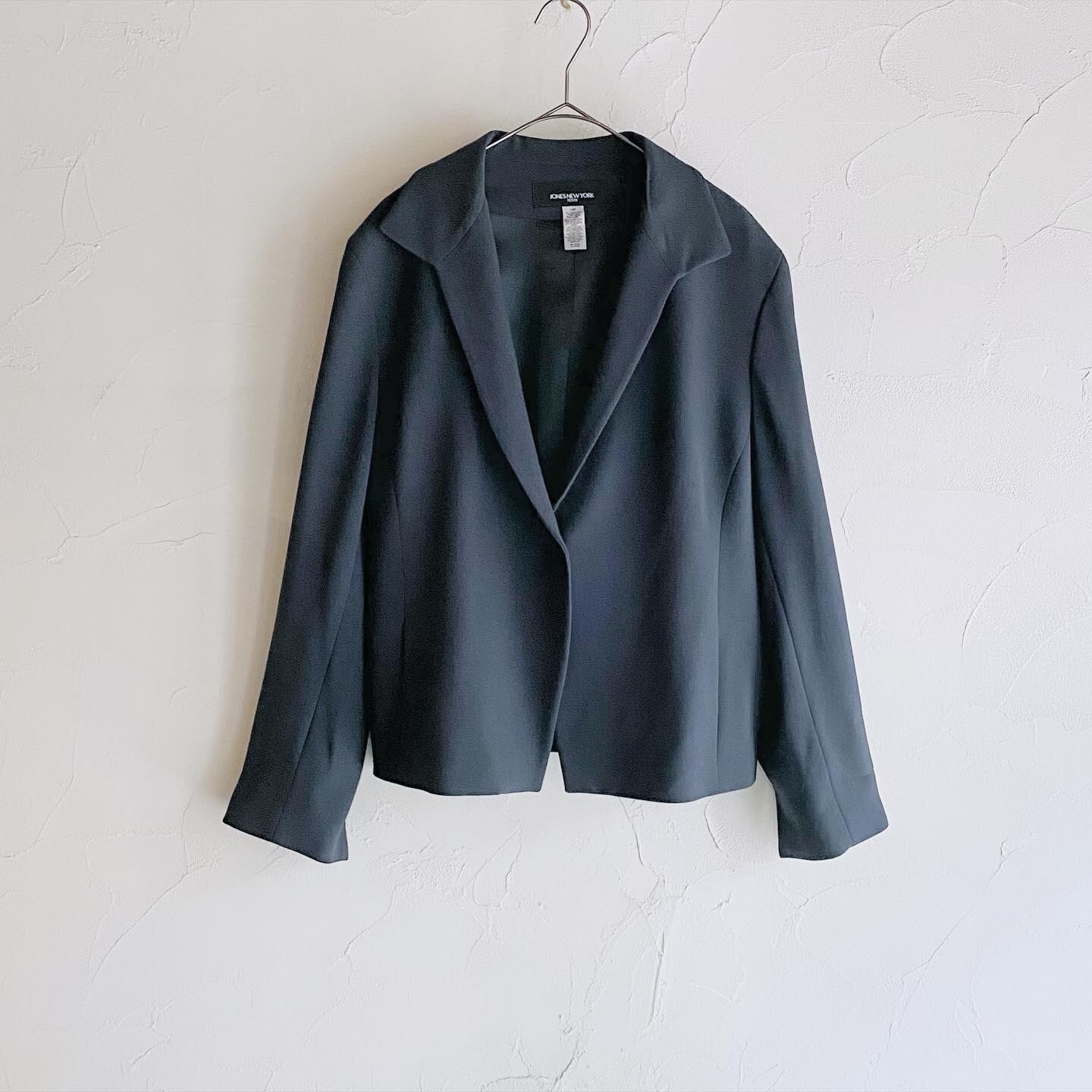 炭黒やグリーン、光の加減によって色味の見え方が異なる絶妙なカラーのジャケットです。肩のやや張りのあるシルエットが今年らしく素敵です。