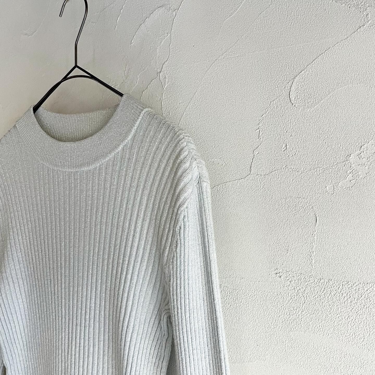 繊細なラメが綺麗なニットトップスです。伸縮性のある生地感で、着心地の良い一着です。