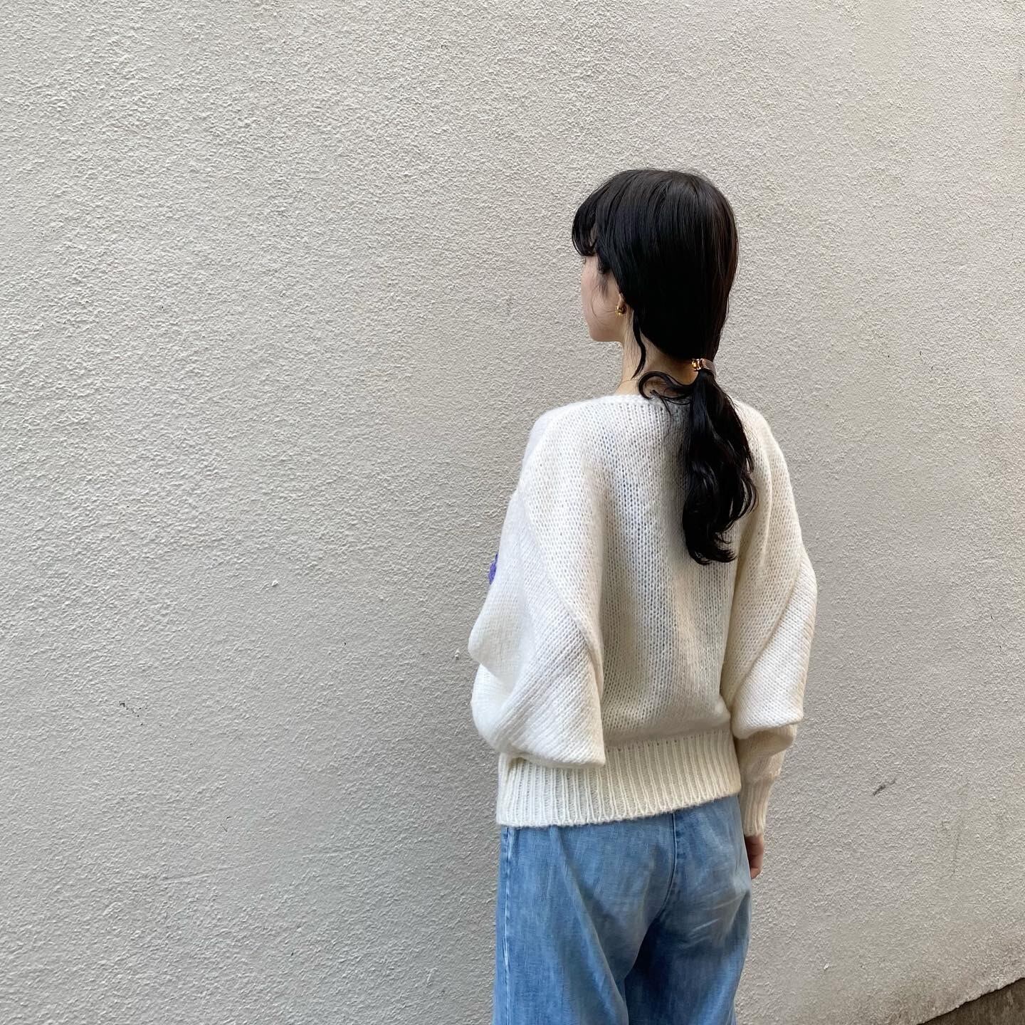 肩の落ち感やドルマンスリーブがゆったりとしたシルエットで可愛らしい一着です。