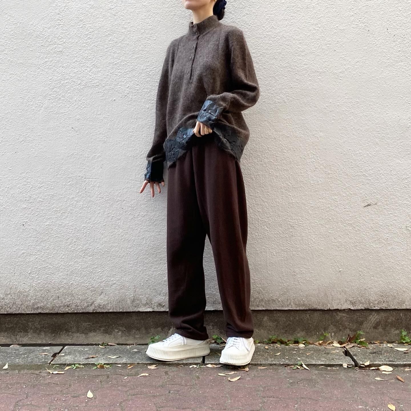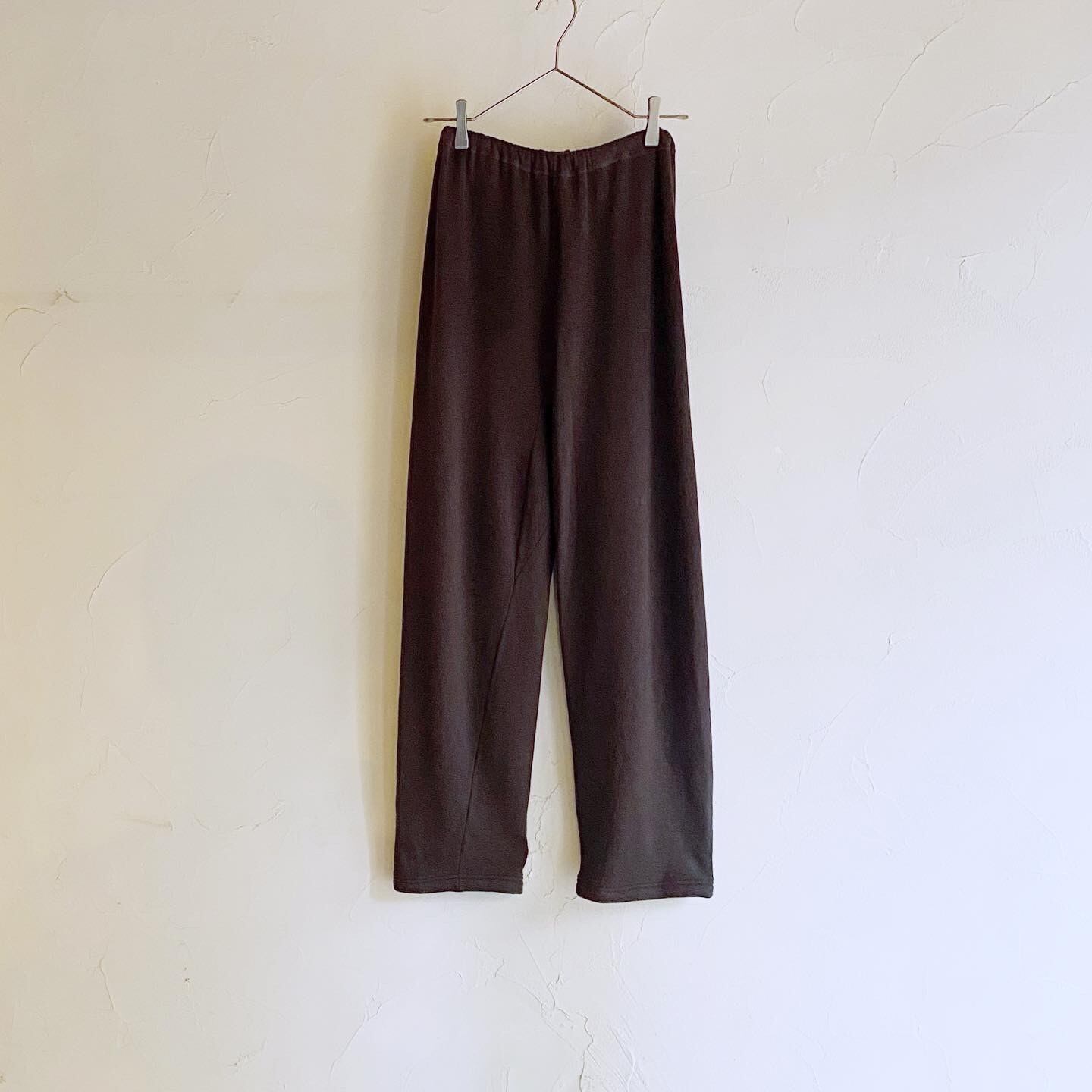 ほっこりしたブラウンカラーが目を惹くスウェットパンツです。ガーゼのようなとても柔らかい生地で着心地抜群です。