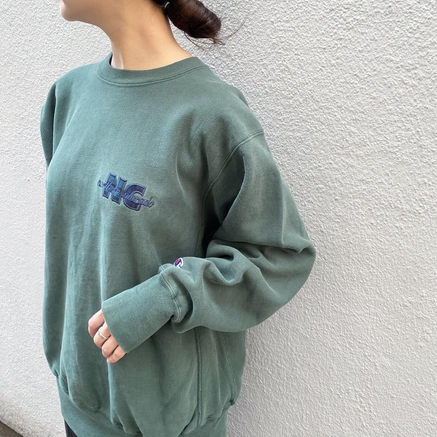 90年代ChampionのREVERSE WEAVEです。しっかりとした厚みのある生地でこれからの季節にぴったりな一枚です。落ち着いたら配色の胸元の刺繍も素敵です。
