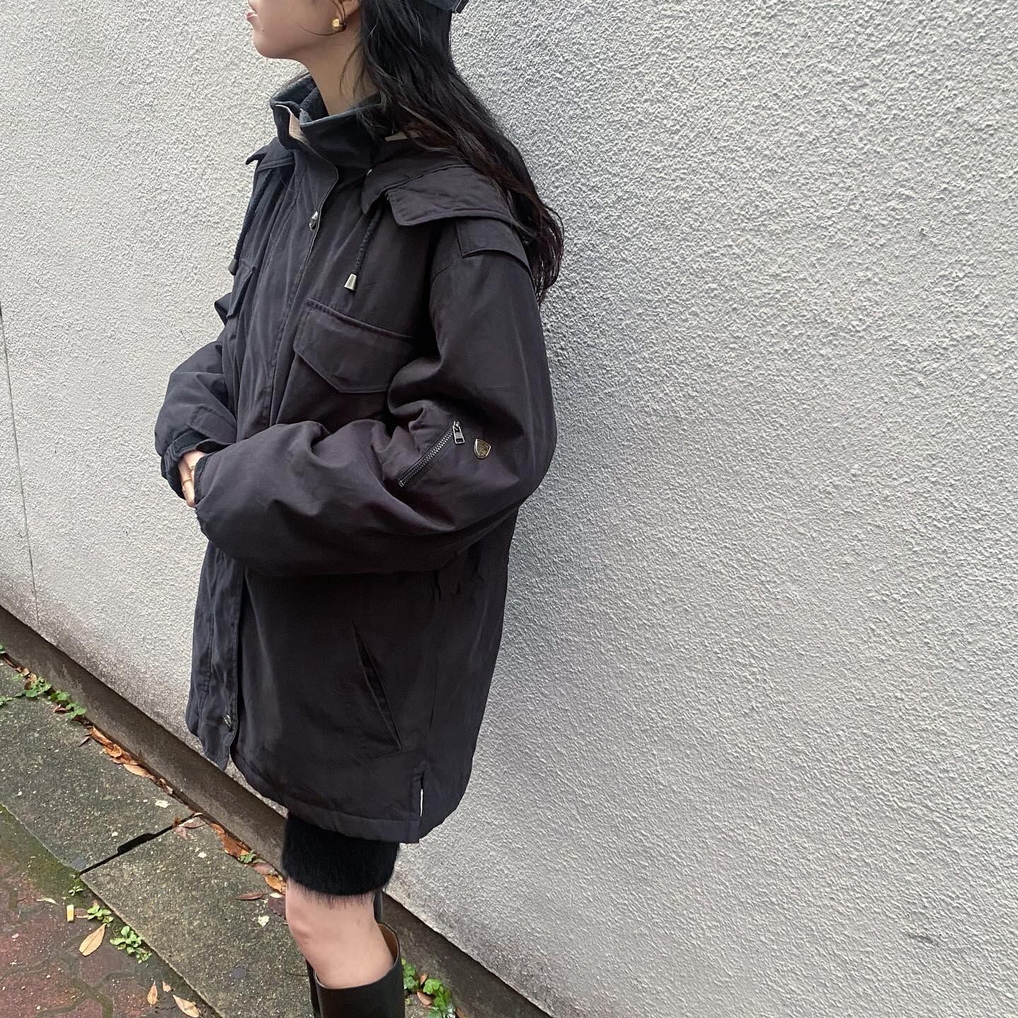 中綿が入っているので軽くて暖かく、フードの取り外しが可能です。内側にドローコードが入っています。