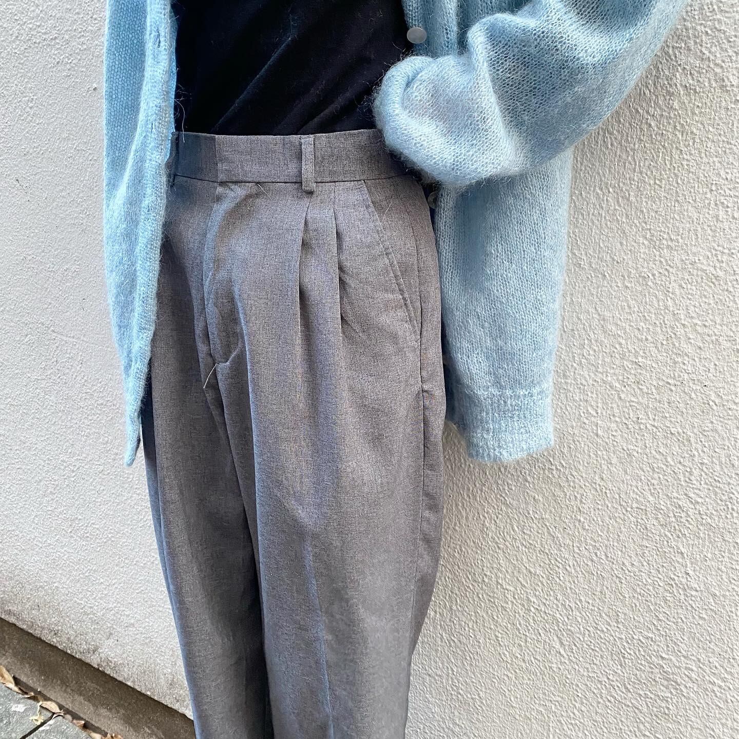 ウエストのタックがお洒落なスラックスパンツです。シルエットが綺麗でなんにでも合わせやすいベーシックな一着です。