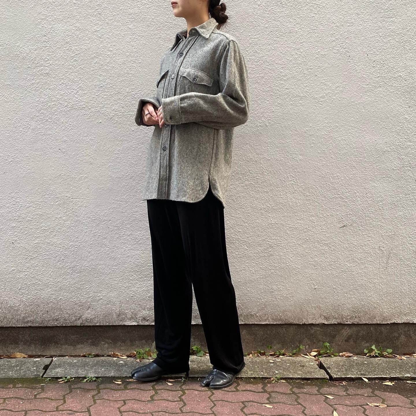 落ち着いた配色のwoolrichよウールシャツです。ラウンド型のスリットが一癖あり素敵です。
