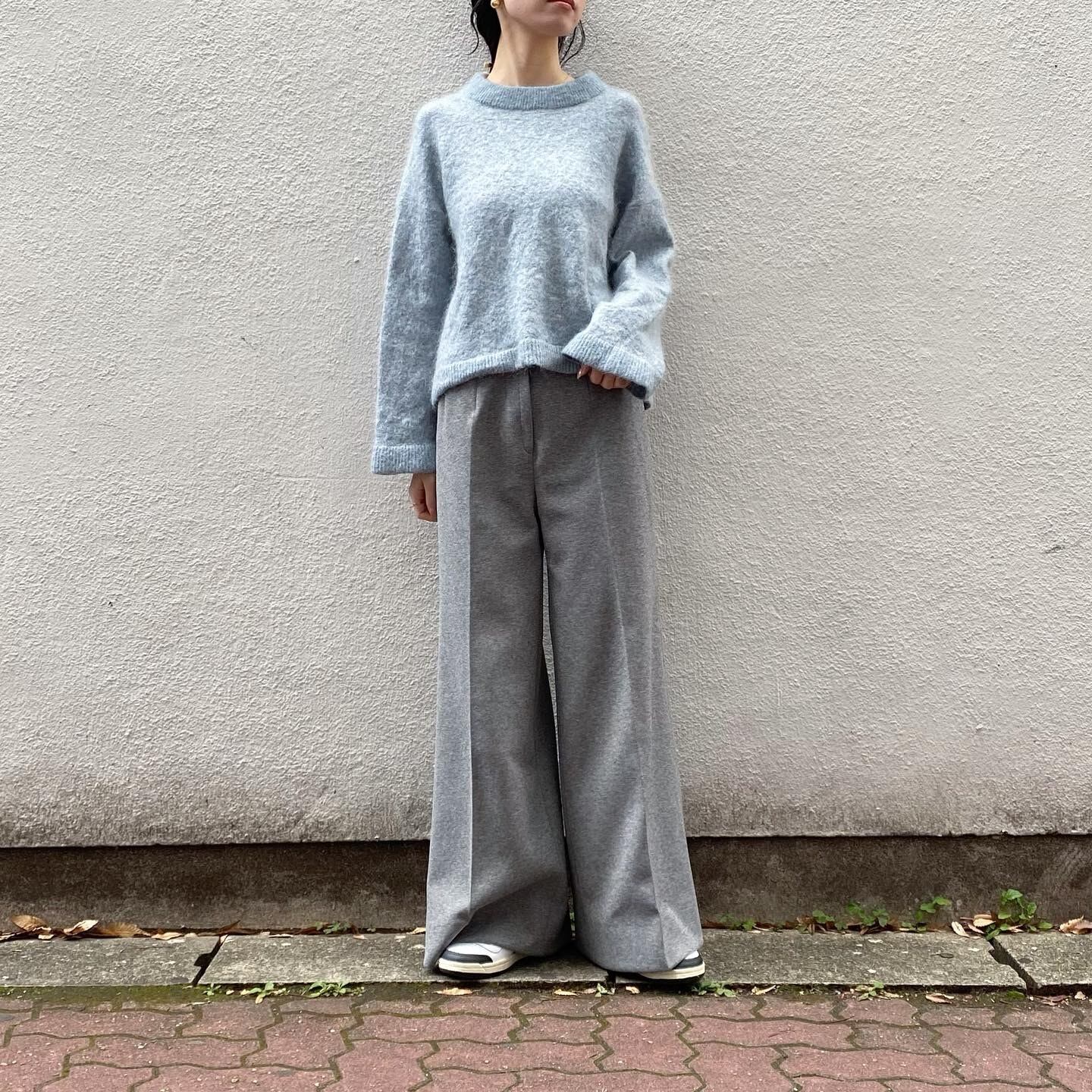 冬らしいライトブルーの色味が素敵なモヘアニットです。短めの丈や、肩の落ち感が可愛い一着です。