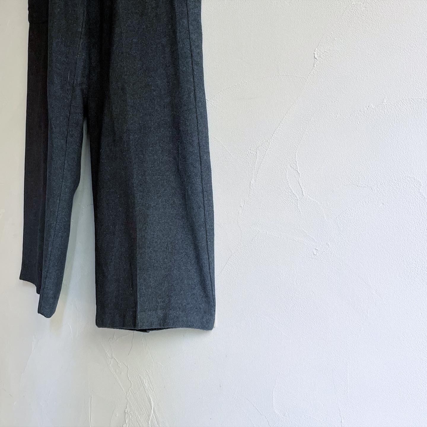 フェルトの様な、柔らかく暖かい生地感のカーゴパンツです。裾口が広めのストレートな形で、ラフにお召し頂けるアイテムです。