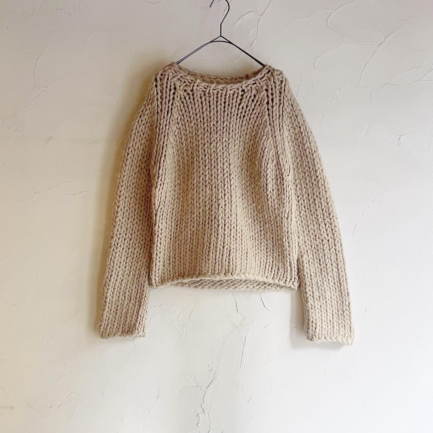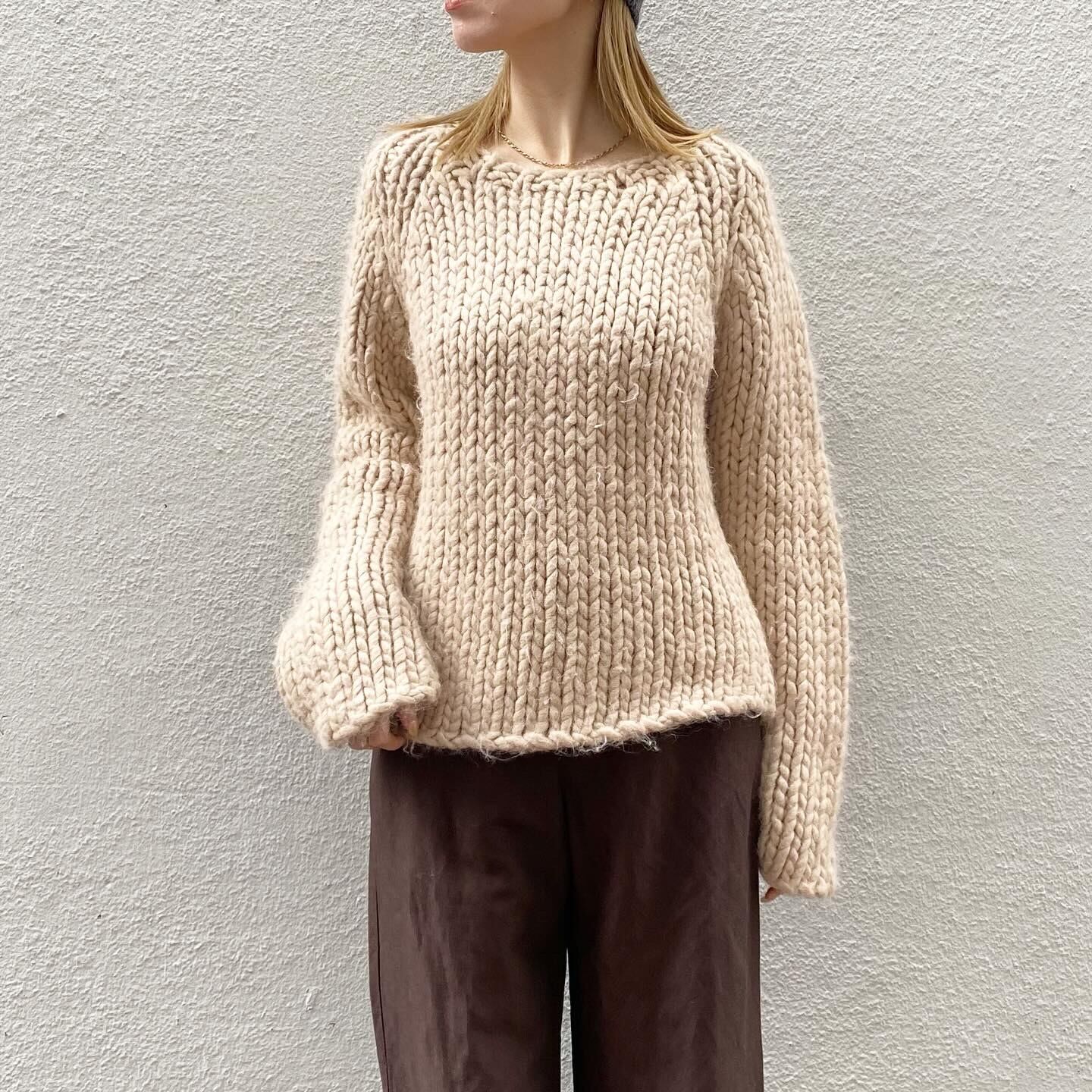 ざっくりした編み方が可愛らしいローゲージニットです。アルパカ混でチクチク感はほとんどなく、暖かくお召し頂けます。