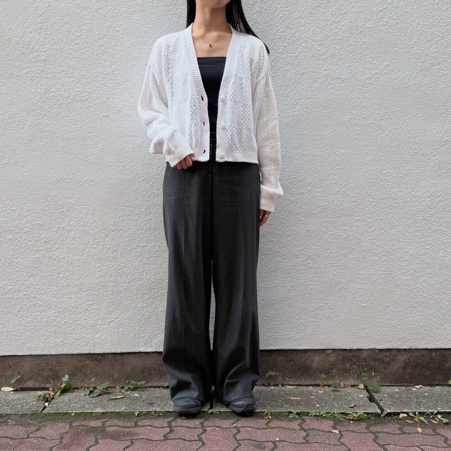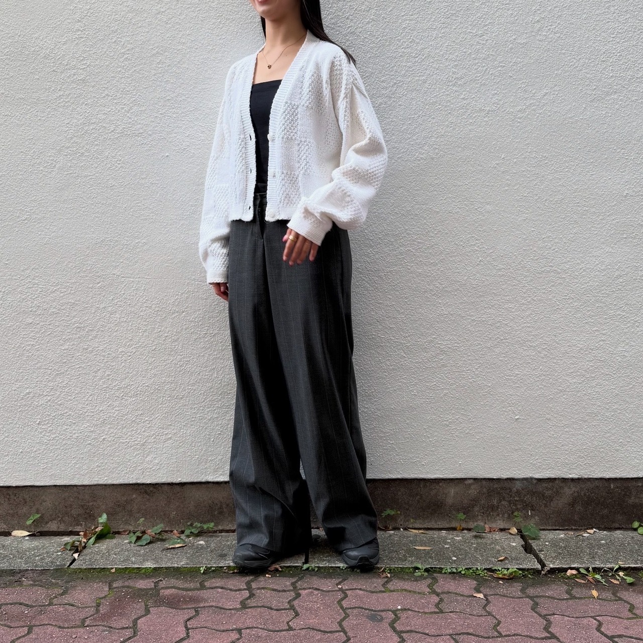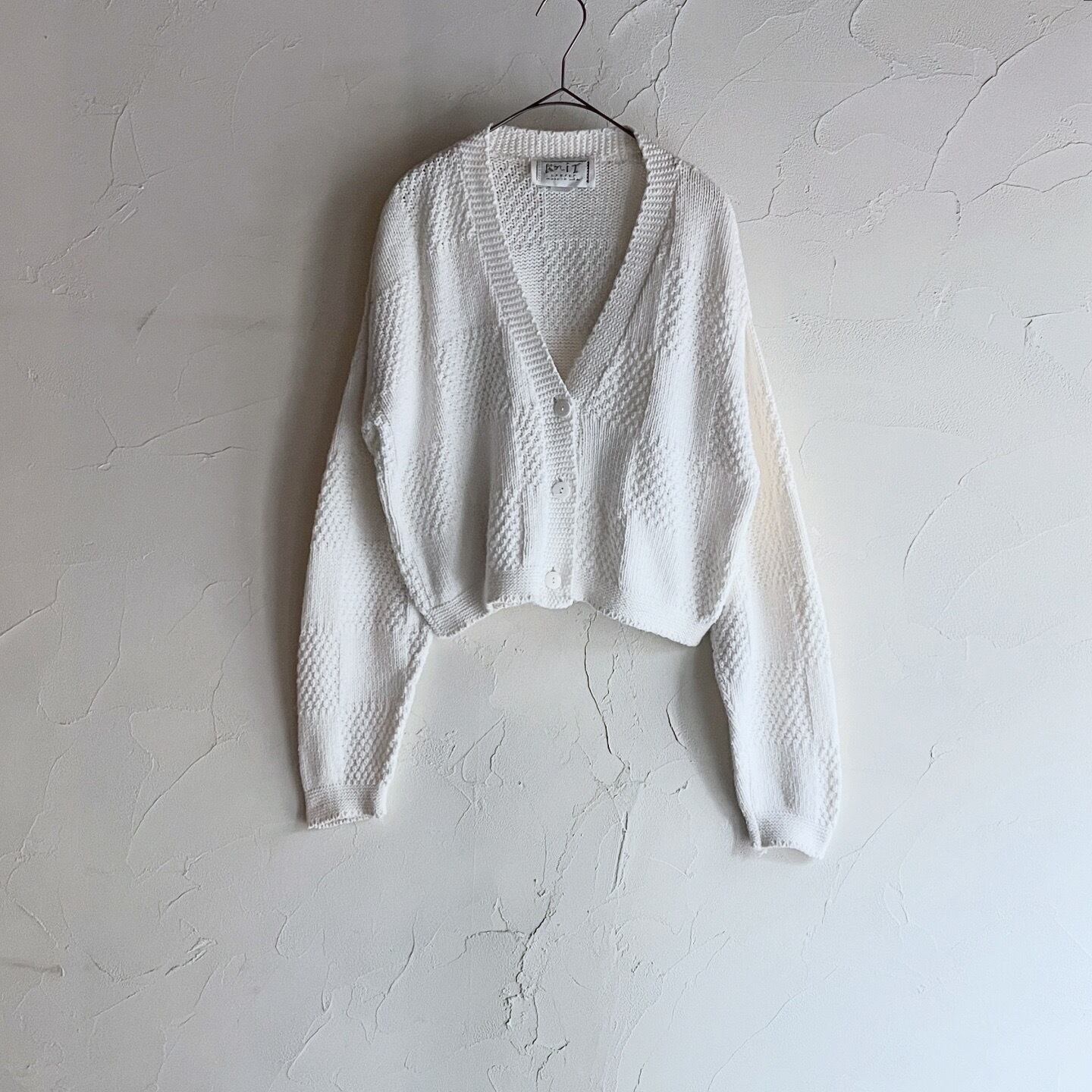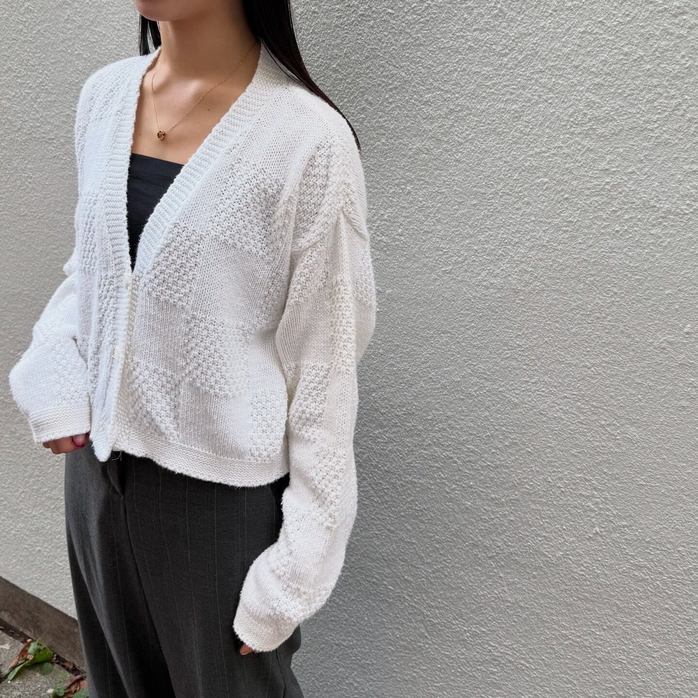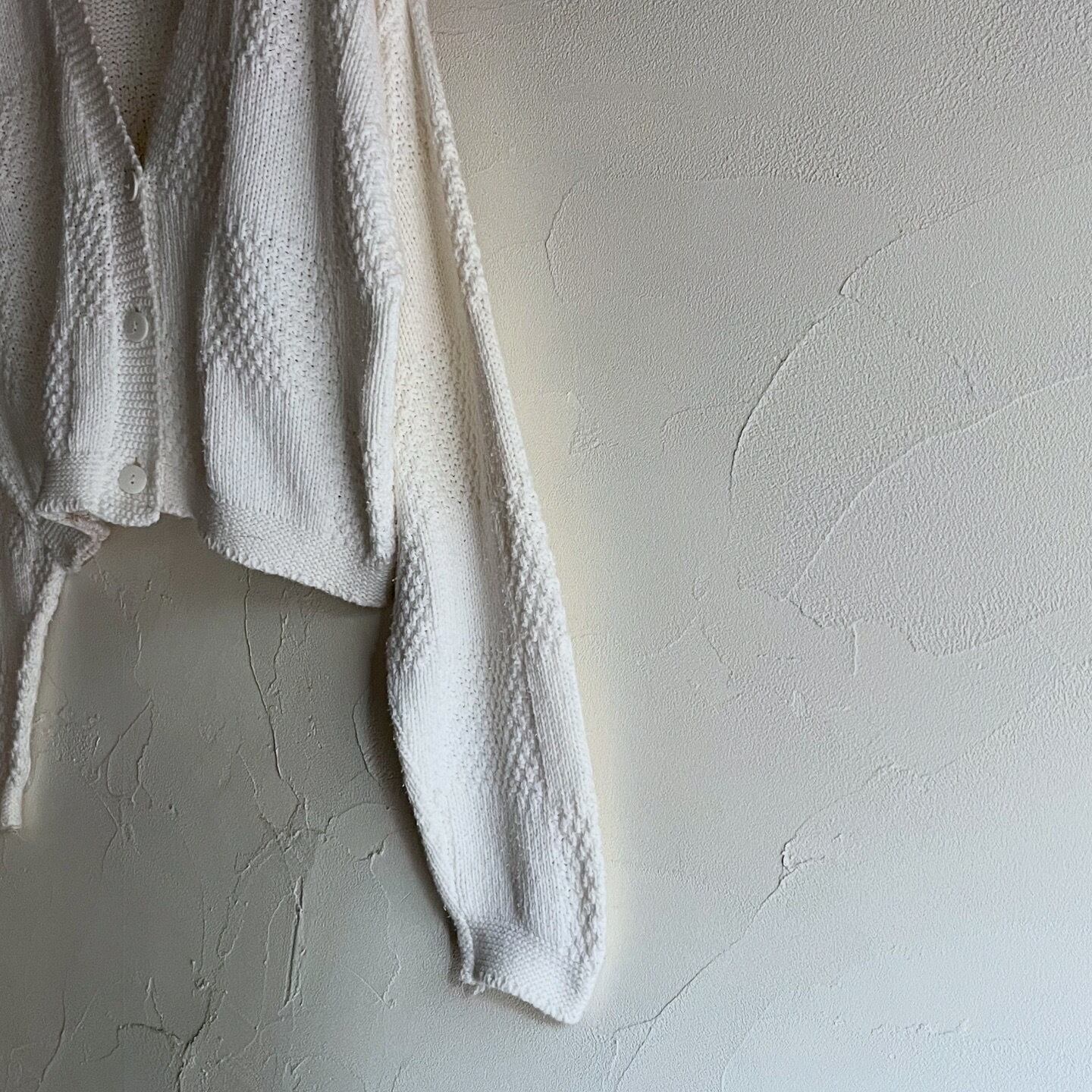 コットン100%でさらっとした生地感のニットカーディガンです。ぽこぽことした立体的な編み地が素敵な一着です。