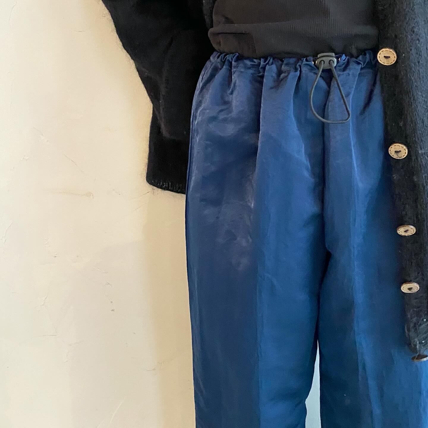 程よい光沢のある生地感が綺麗なカーゴパンツです。シンプルなデザインなので、使い勝手の良い一着です。