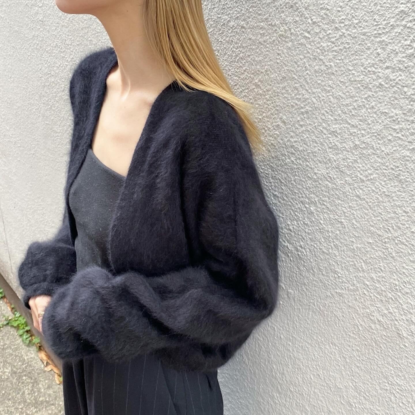 アンゴラ混でふわふわな着心地のニットカーディガンです。クロップド丈でボトムスとのバランスが取りやすい一着です。