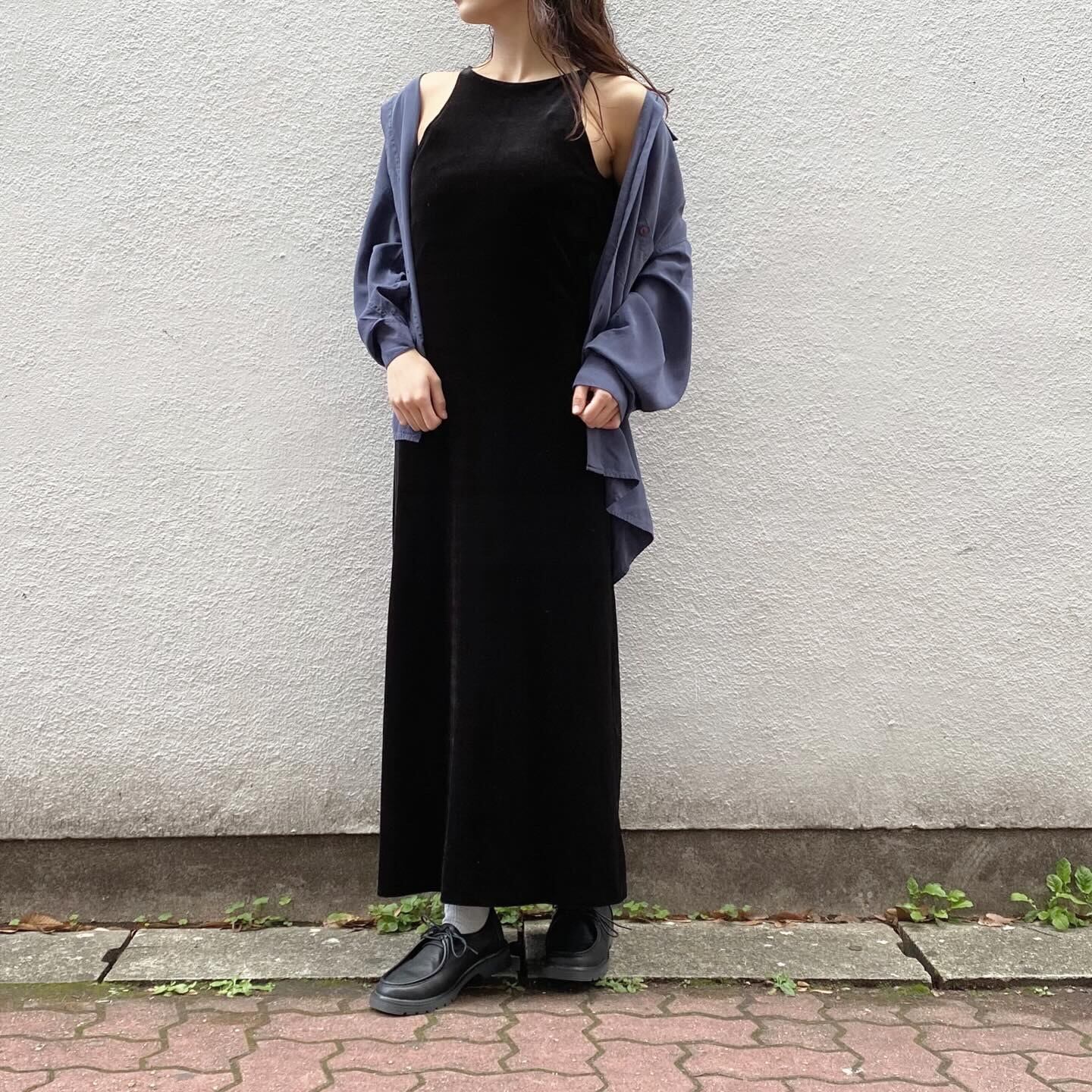アメリカンスリーブがヘルシーにお召し頂けるベロアワンピースです。合わせるものによってカジュアルにもフォーマルにもなる、使い勝手の良い一着です。