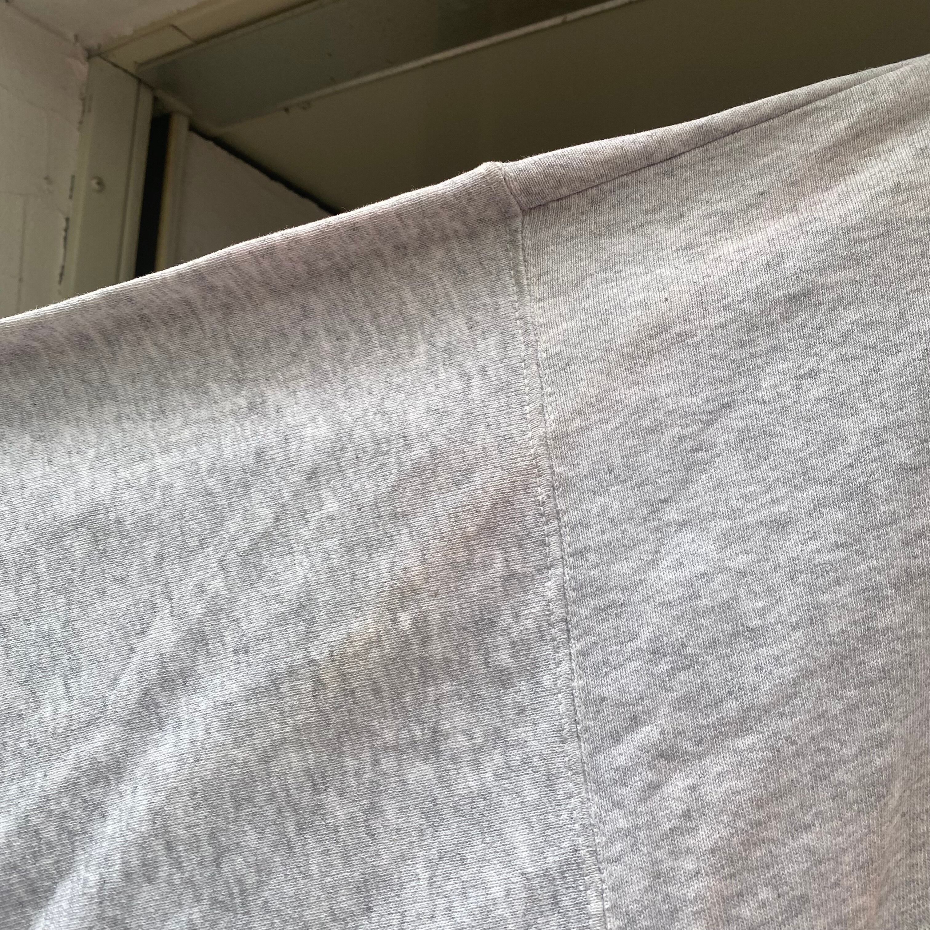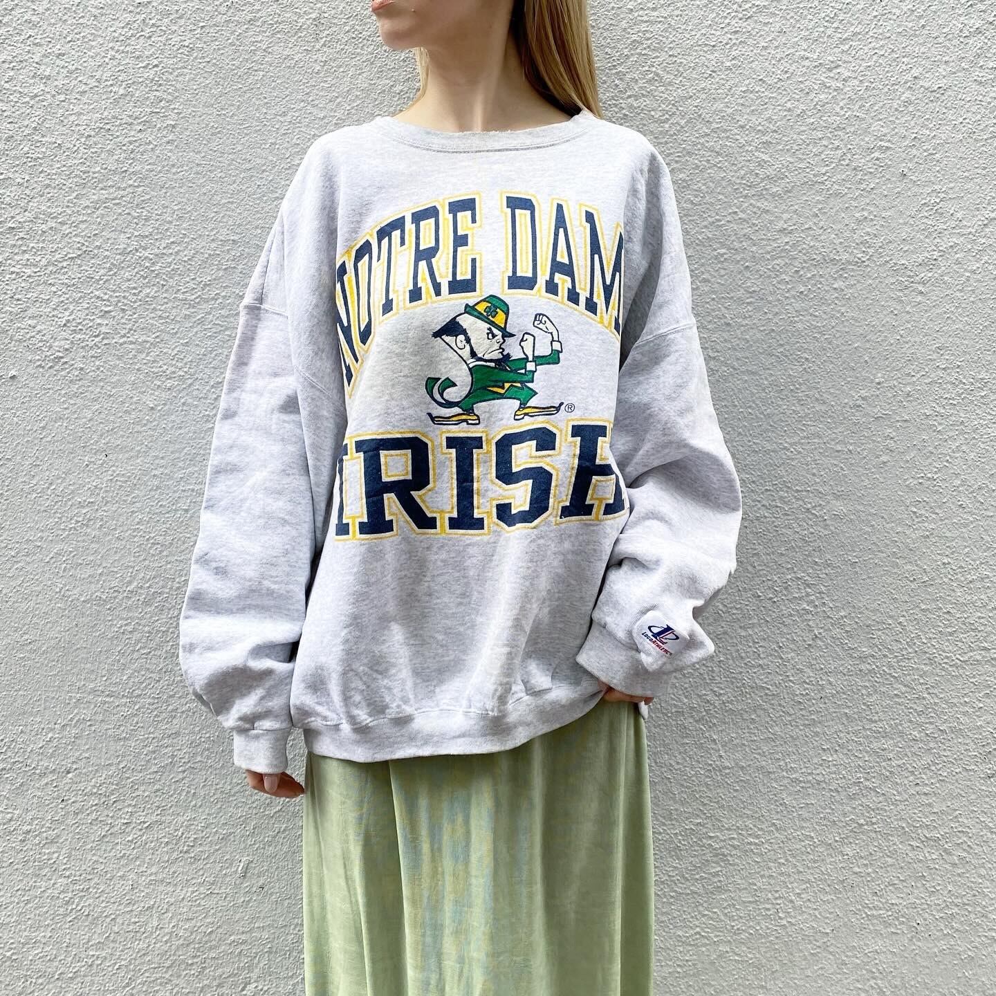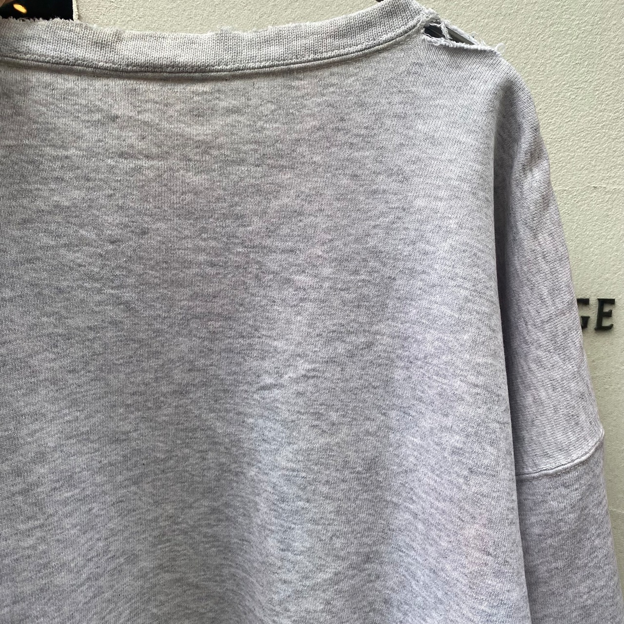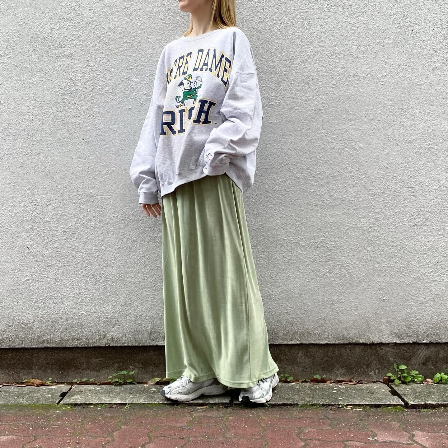 程よいダメージ具合が古着好きには堪らないスウェットです。イエローとグリーンのカラーリングが素敵な一着です。