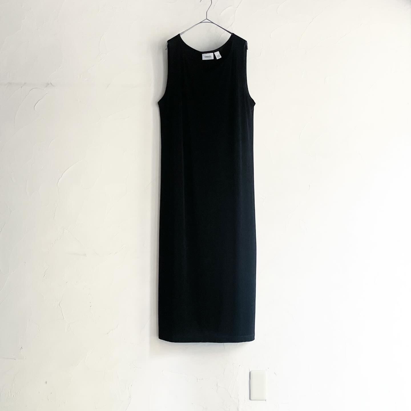 光沢感とてろっとした柔らかさをもつ生地のスパンデックス混のワンピースです。ノースリーブと左サイドにスリットが入っているため、夏場に涼しく着られます。