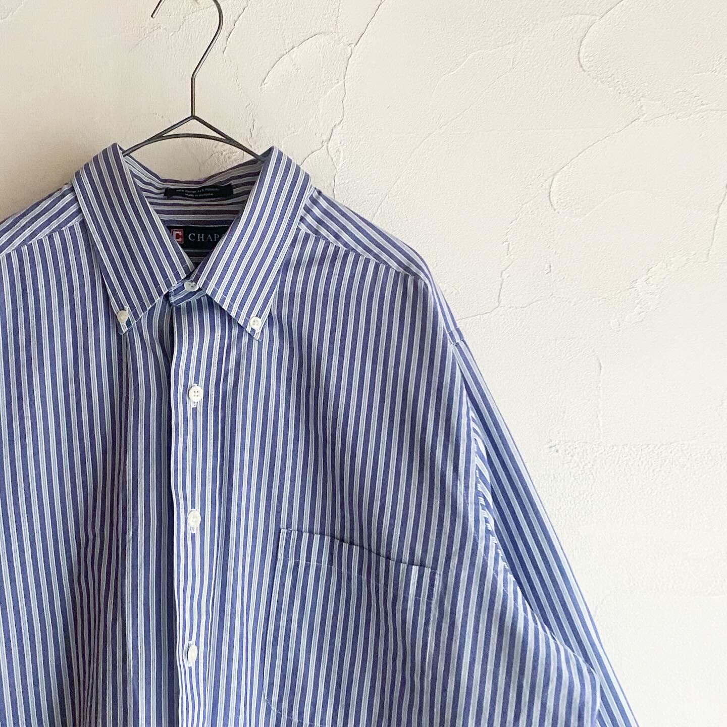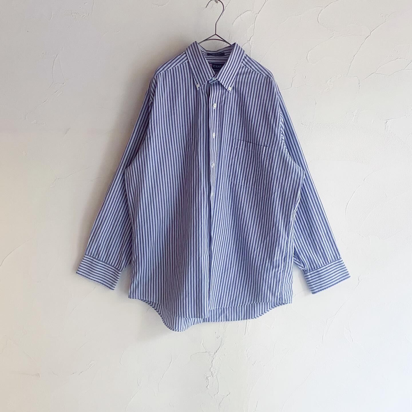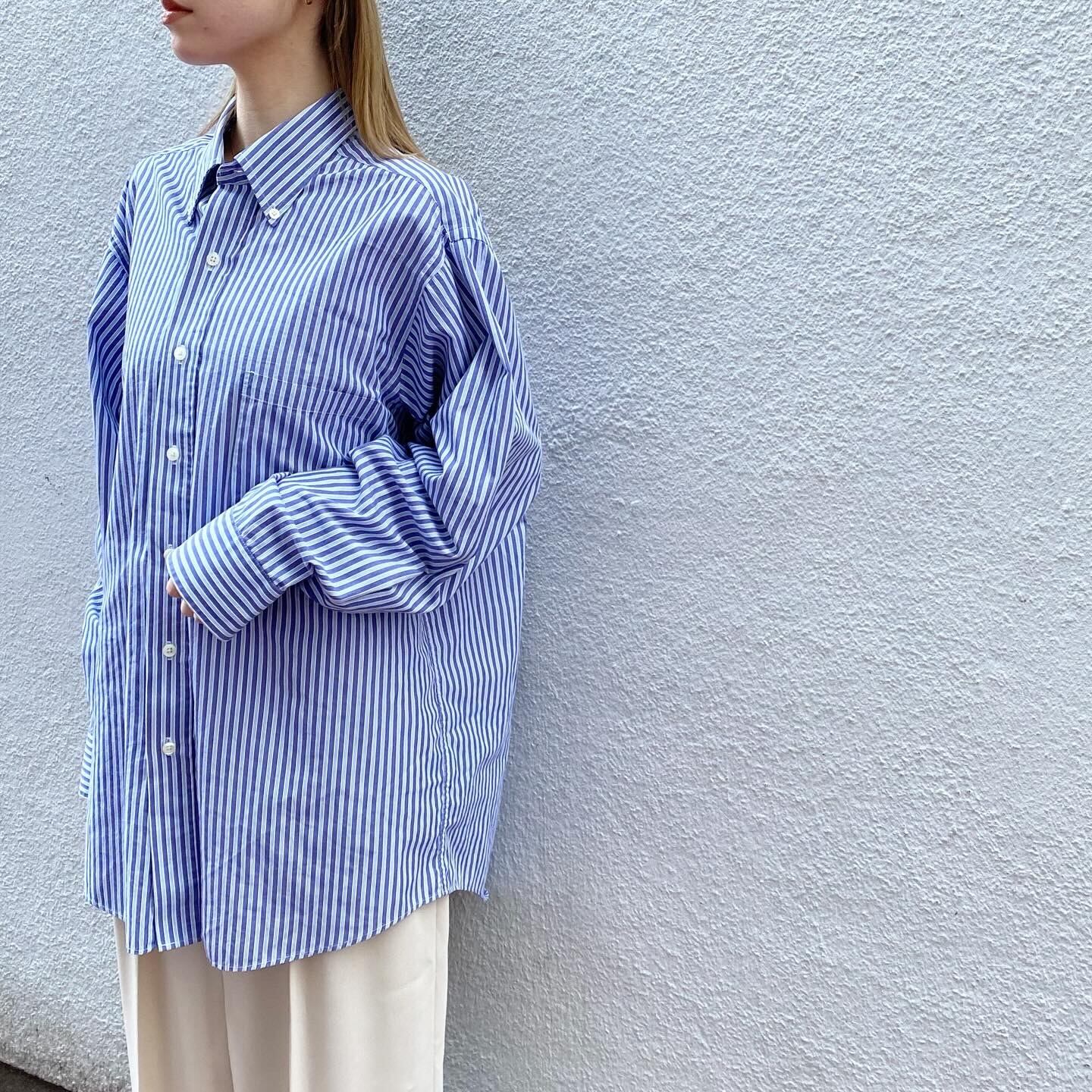 パープルとブルーの配色が絶妙なストライプシャツです。ややオーバーサイズでたぷっとしたシルエットが素敵です。