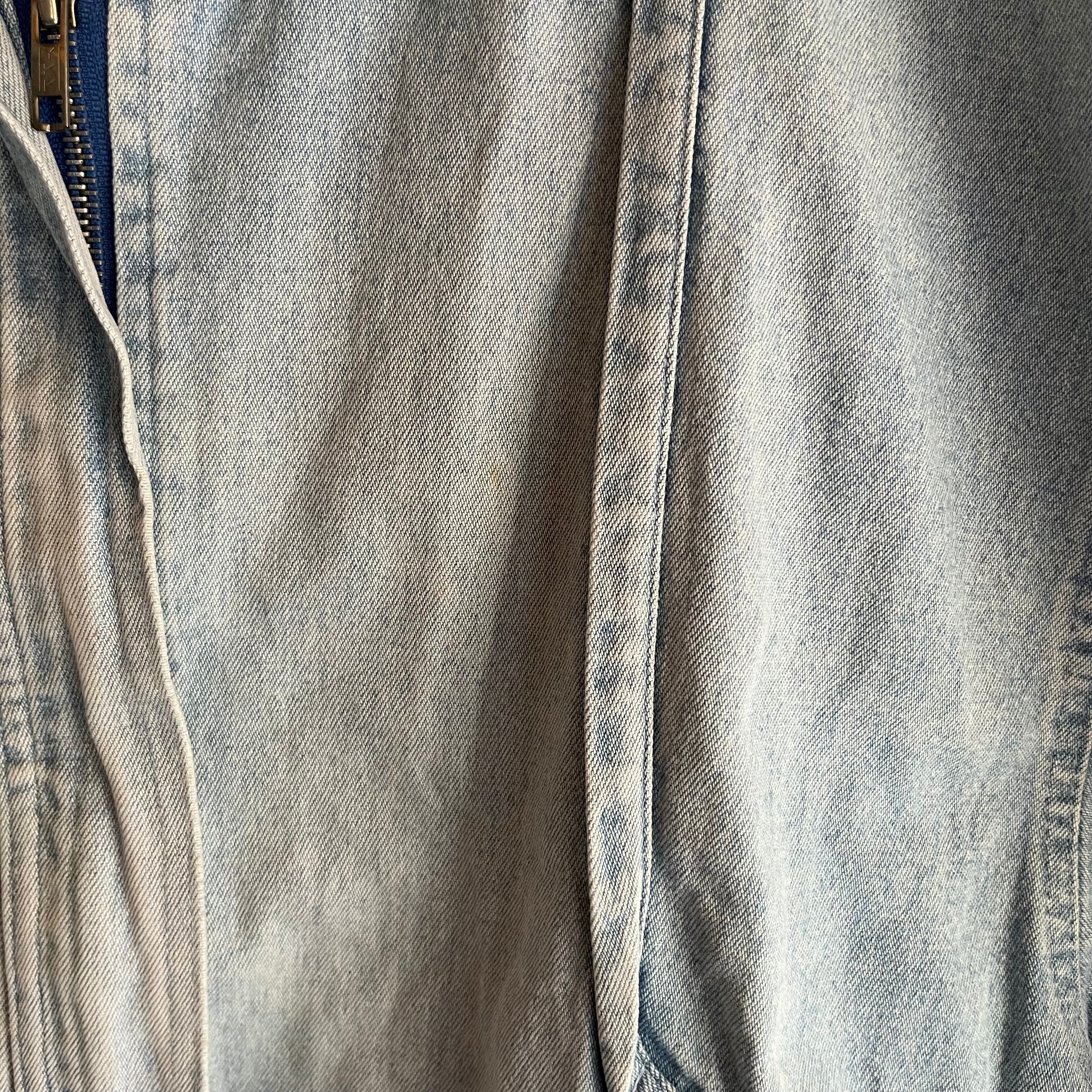 販売前に全体をチェックし、色落ちや穴等気付いた箇所(商品の味としての風合いと判断した箇所を除き)は記載致しますが、稀にわずかなダメージを見落とす場合がございます。