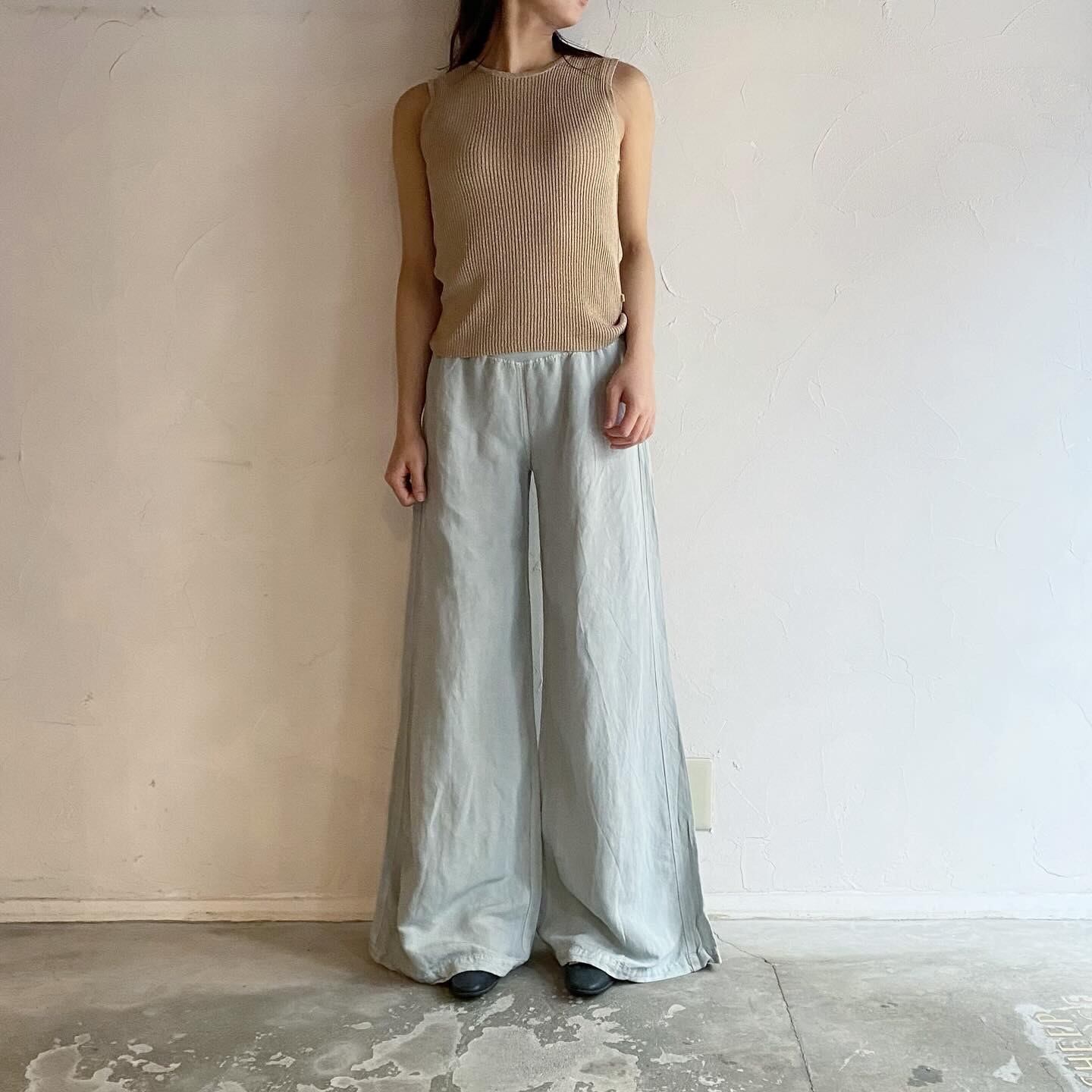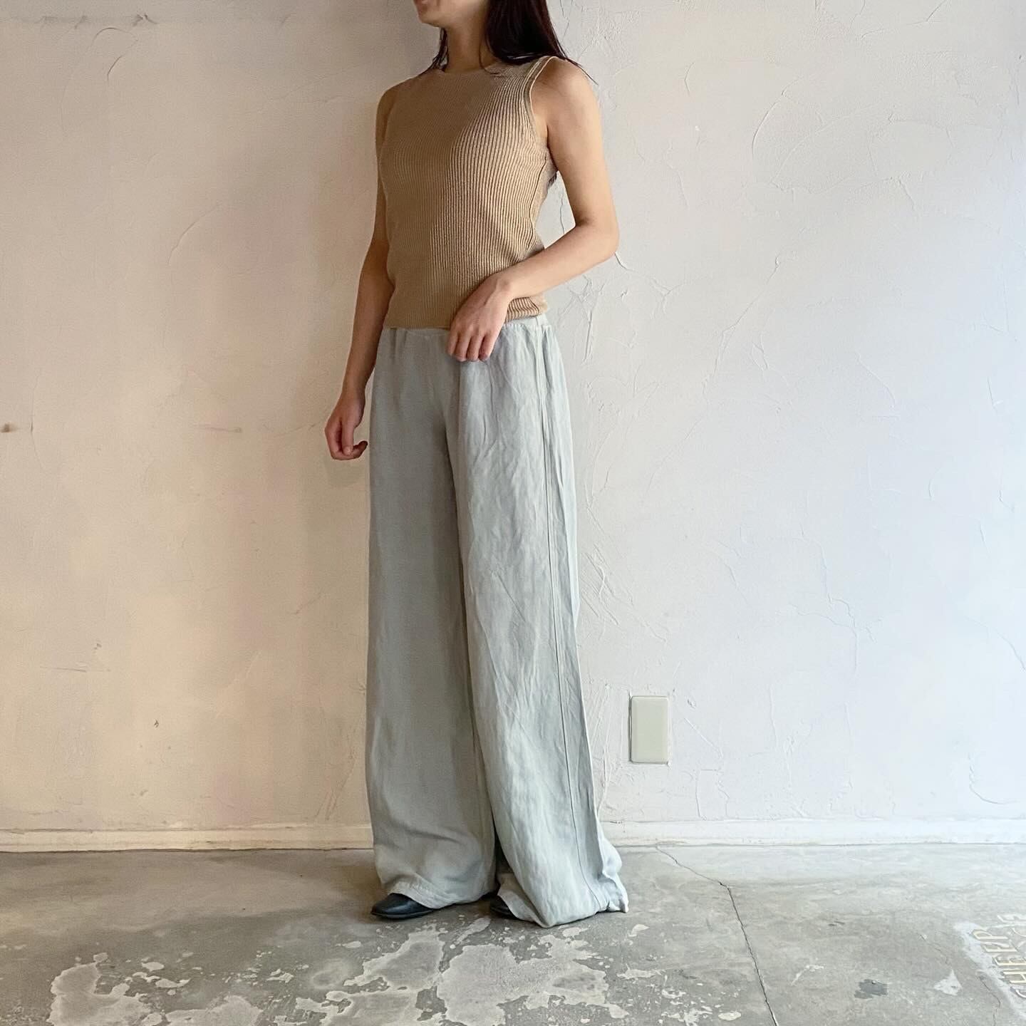 ウエストのゴム仕様で、脚長効果抜群なパンツです。サラッとしたドライな生地感で、履き心地の良い一着です。