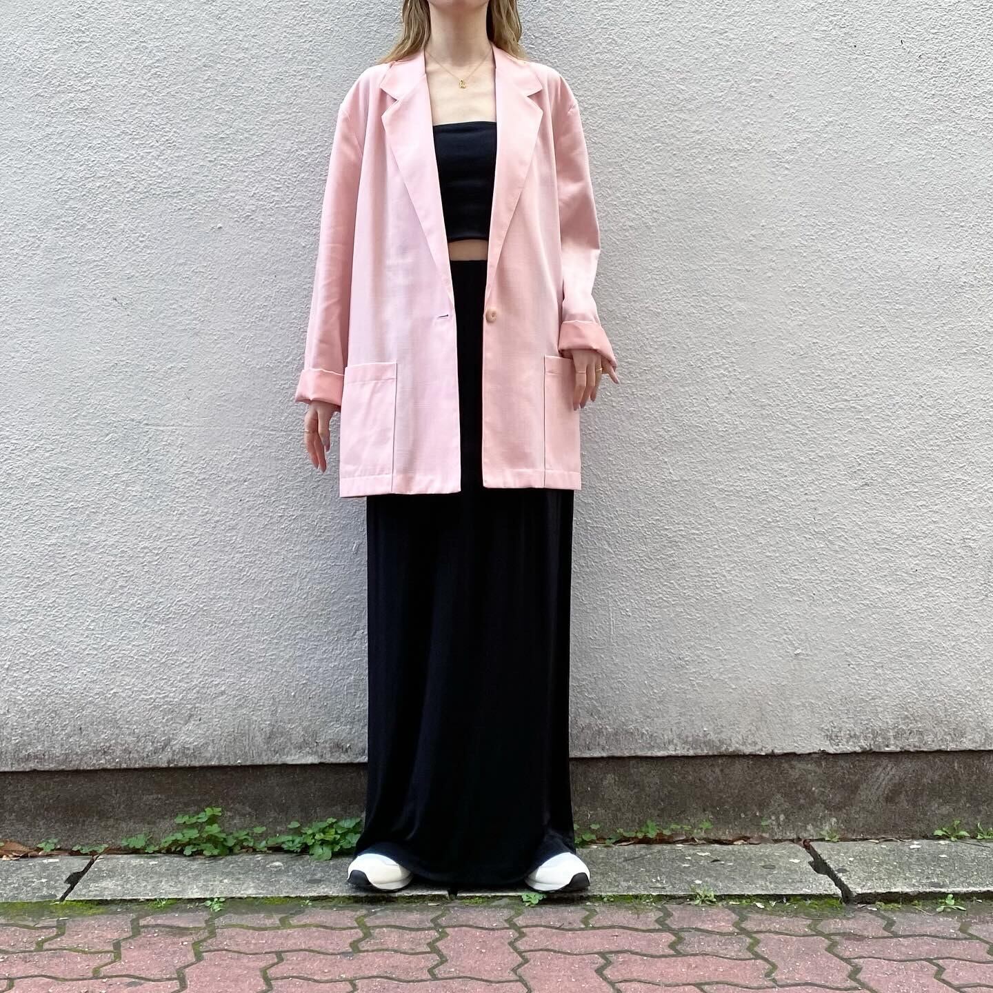 春らしいピンクカラーが目を惹くテーラードジャケットです。