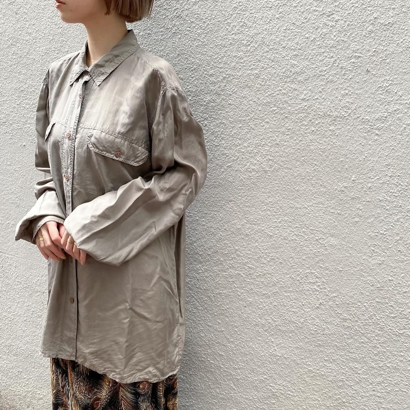 100%silkで程良い光沢感のあるシャツです。さらっとした通気性の良い素材なので、夏場の羽織りとしてもオススメです。