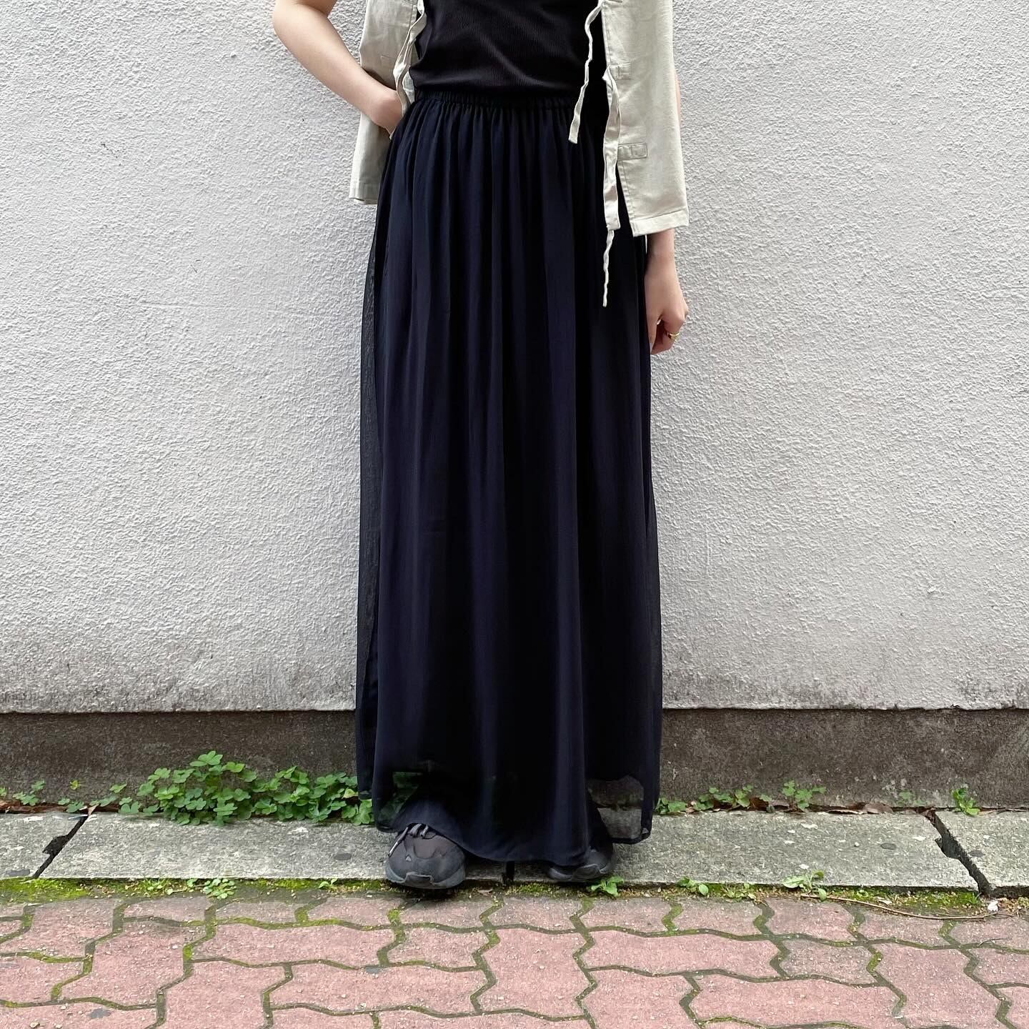 程よい透け感が春らしい印象のシアースカートです。裏地がついており、ふわっと軽い履き心地です。
