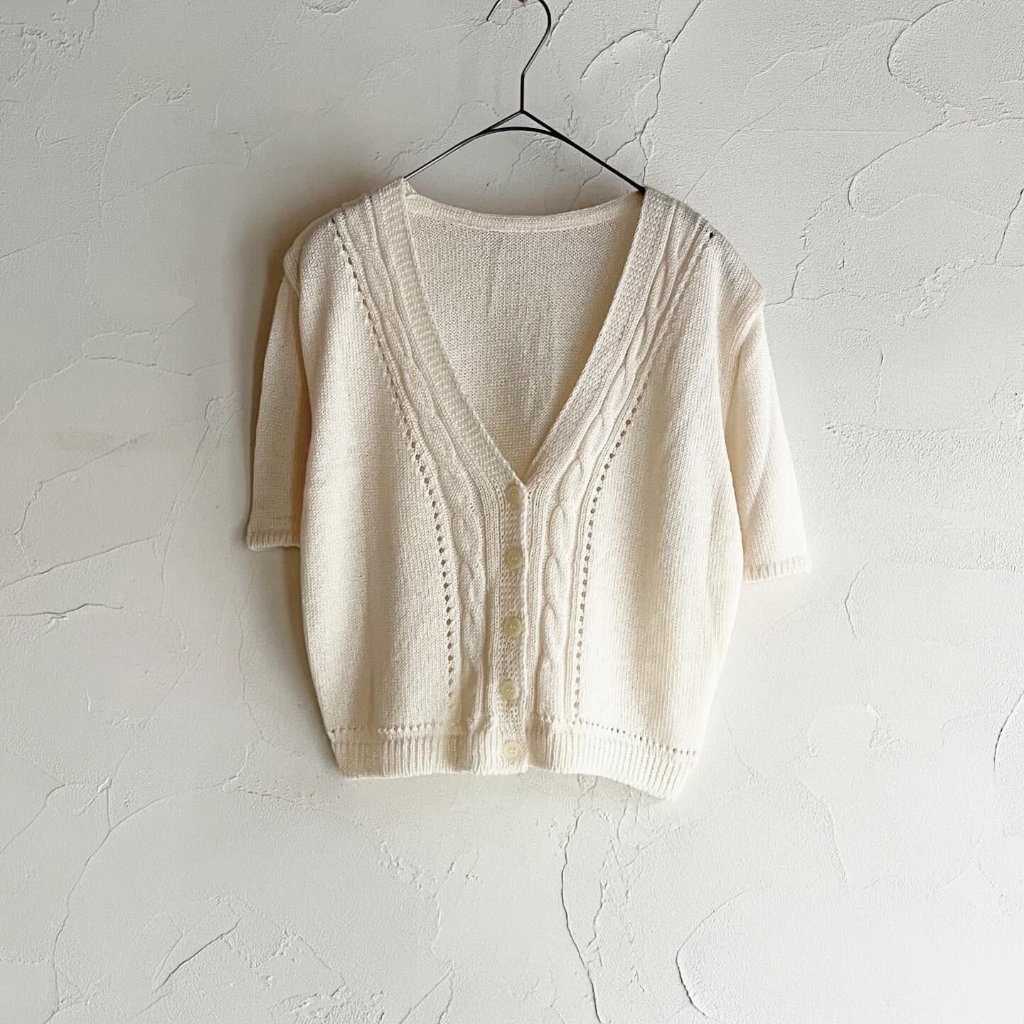 ざっくりとした編み方のニットカーディガンです。短めの着丈に対して身幅が少し広く、ゆるっとしたシルエットが可愛いです。