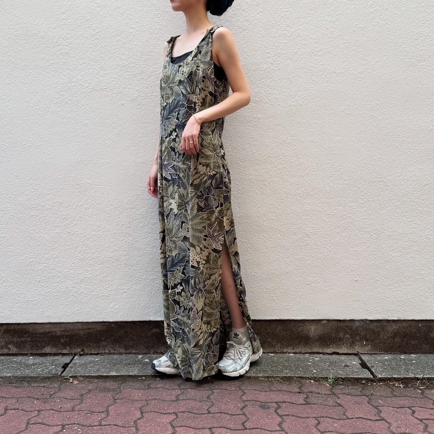 全体にプリントされたお花が存在感のあるワンピースです。レーヨン100%で涼しく、美しいシルエットでお召し頂けます。
