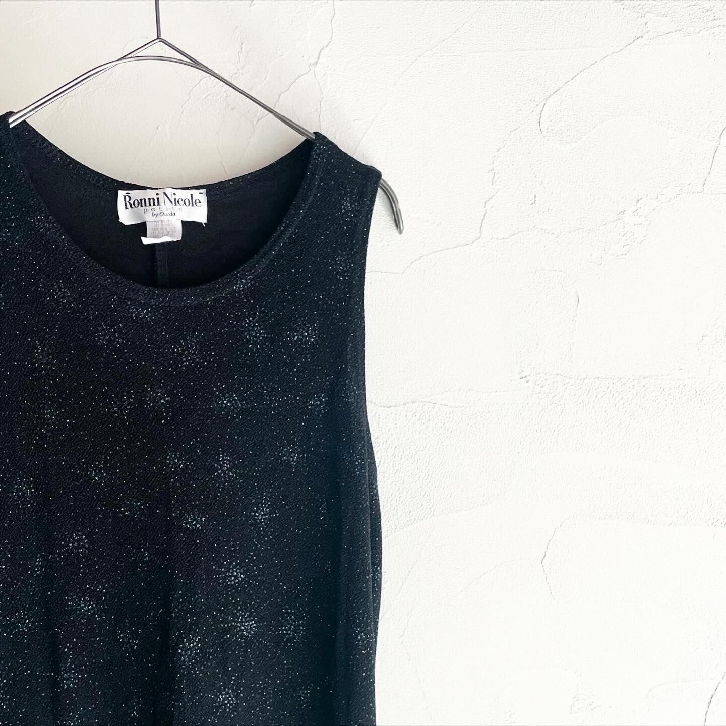 散りばめられたラメが美しいスパンデックス混のワンピースです。1枚で着るのはもちろん、シャツを羽織る等レイヤードすることでデイリー使いしやすいです。