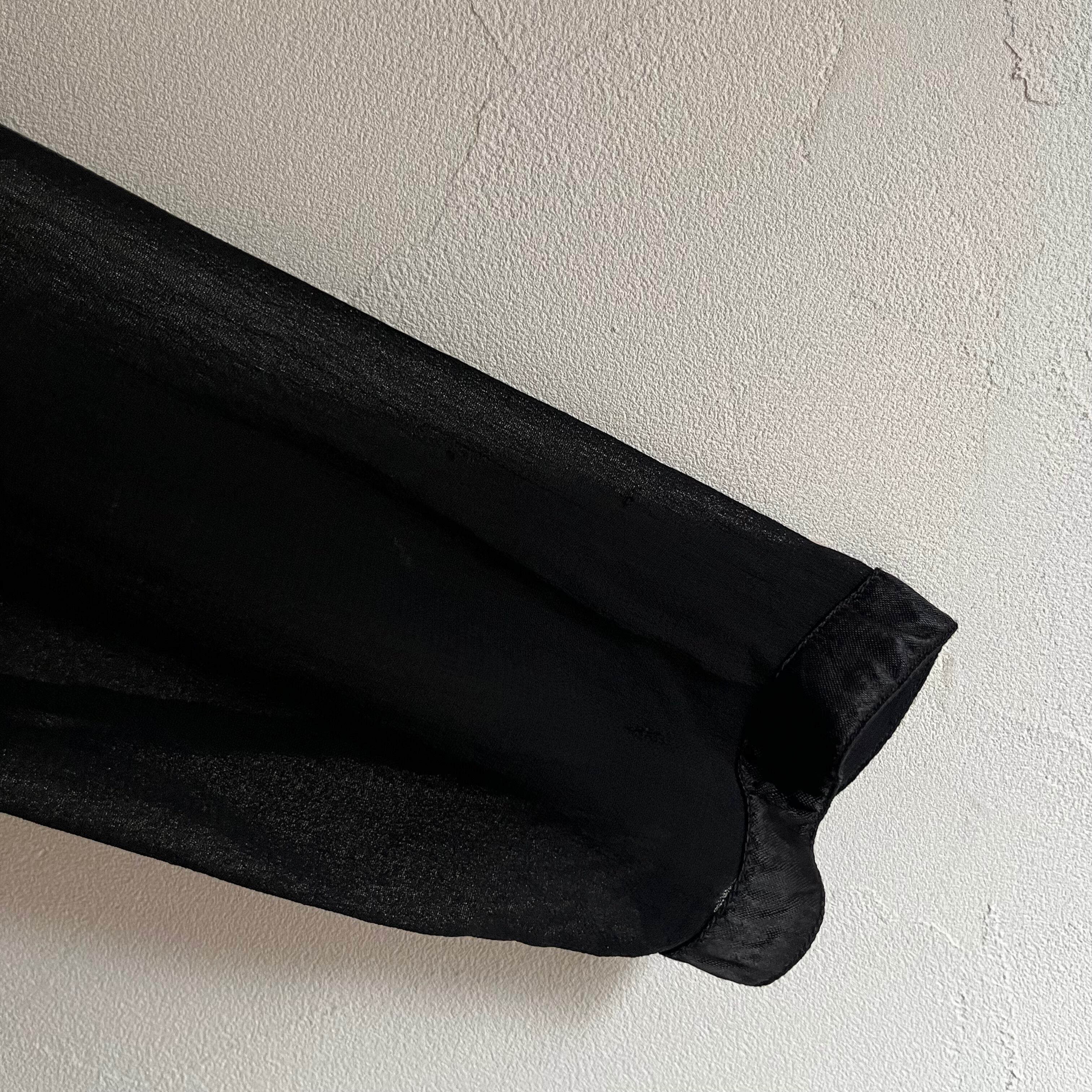 柔らかくさらっとしたシアー生地のカーディガンです。裾や袖口、襟ぐりがサテン生地になっています。