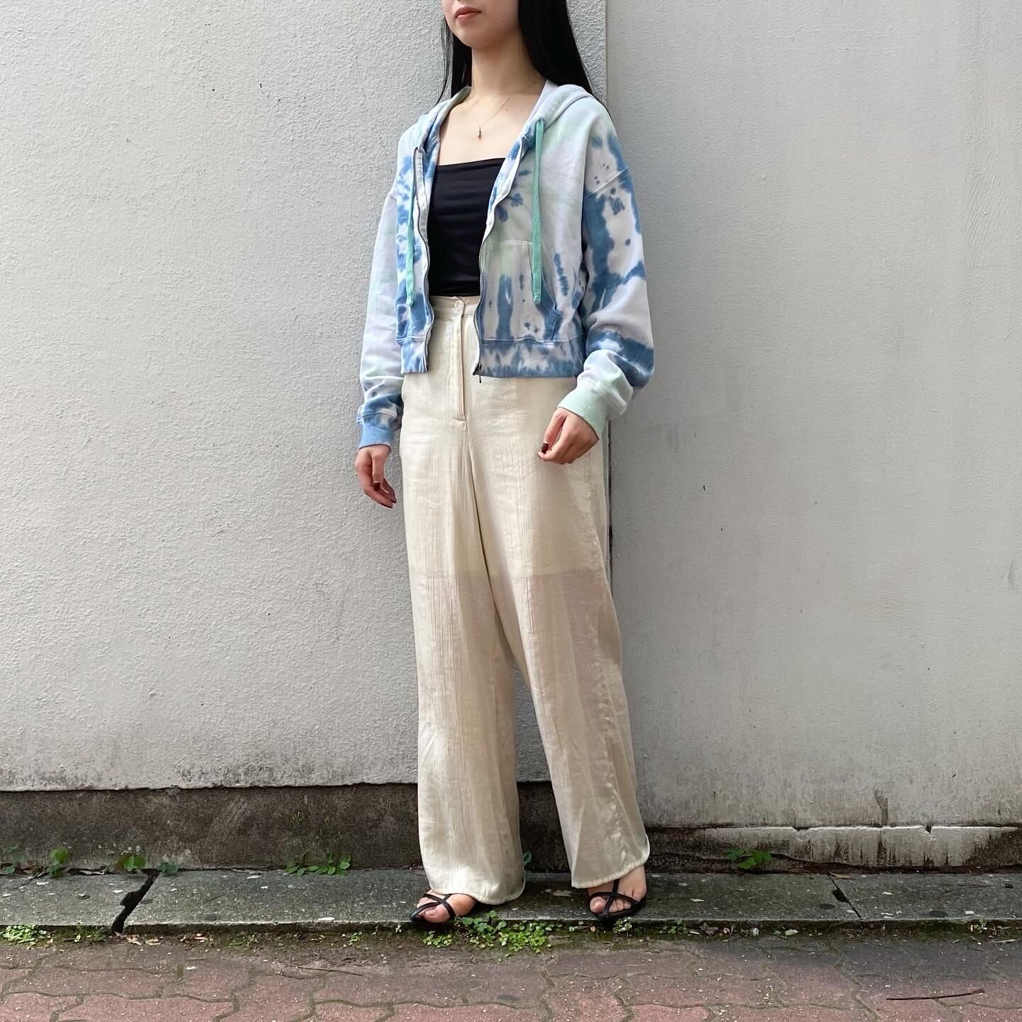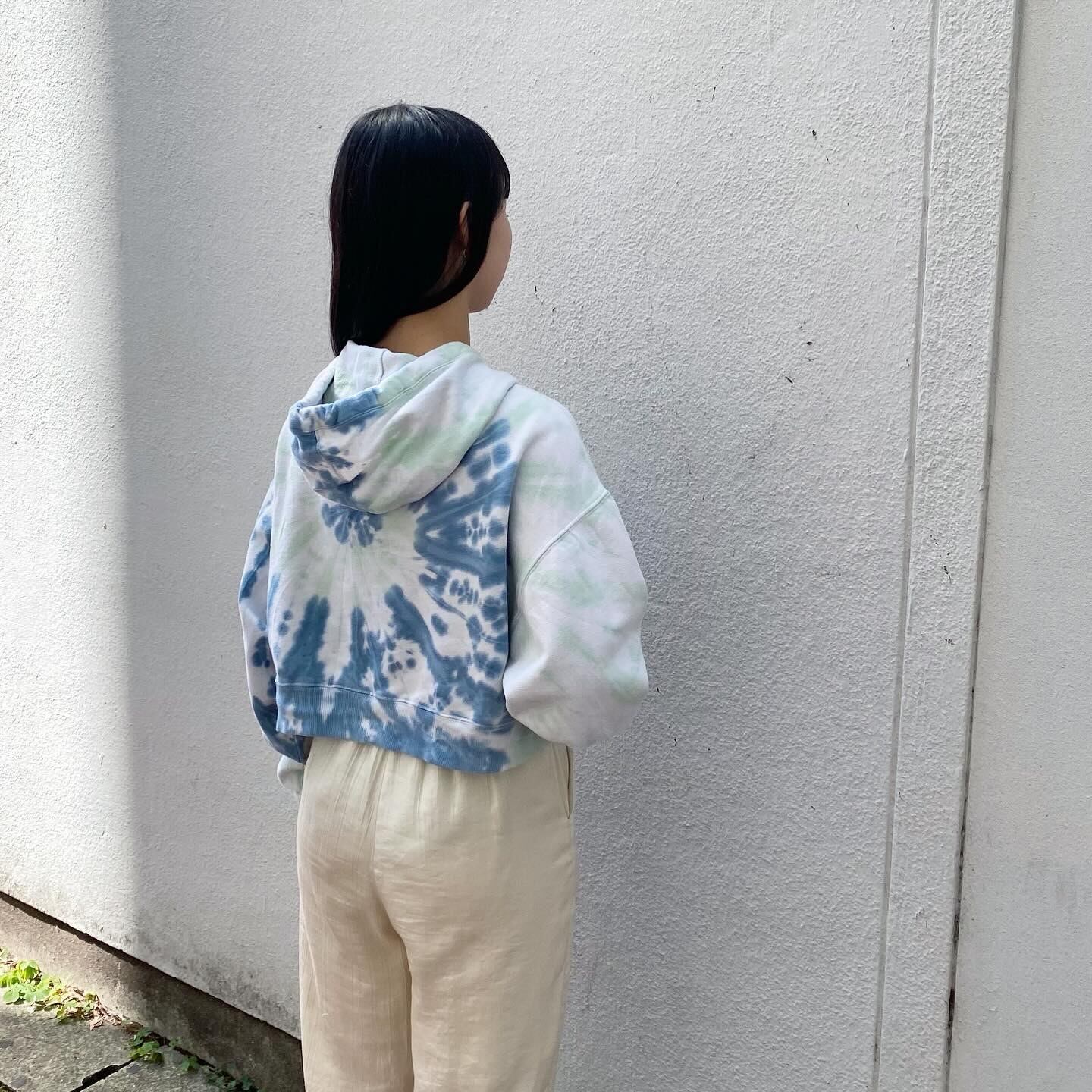 ブルーとグリーンのタイダイ柄が爽やかなパーカーです。