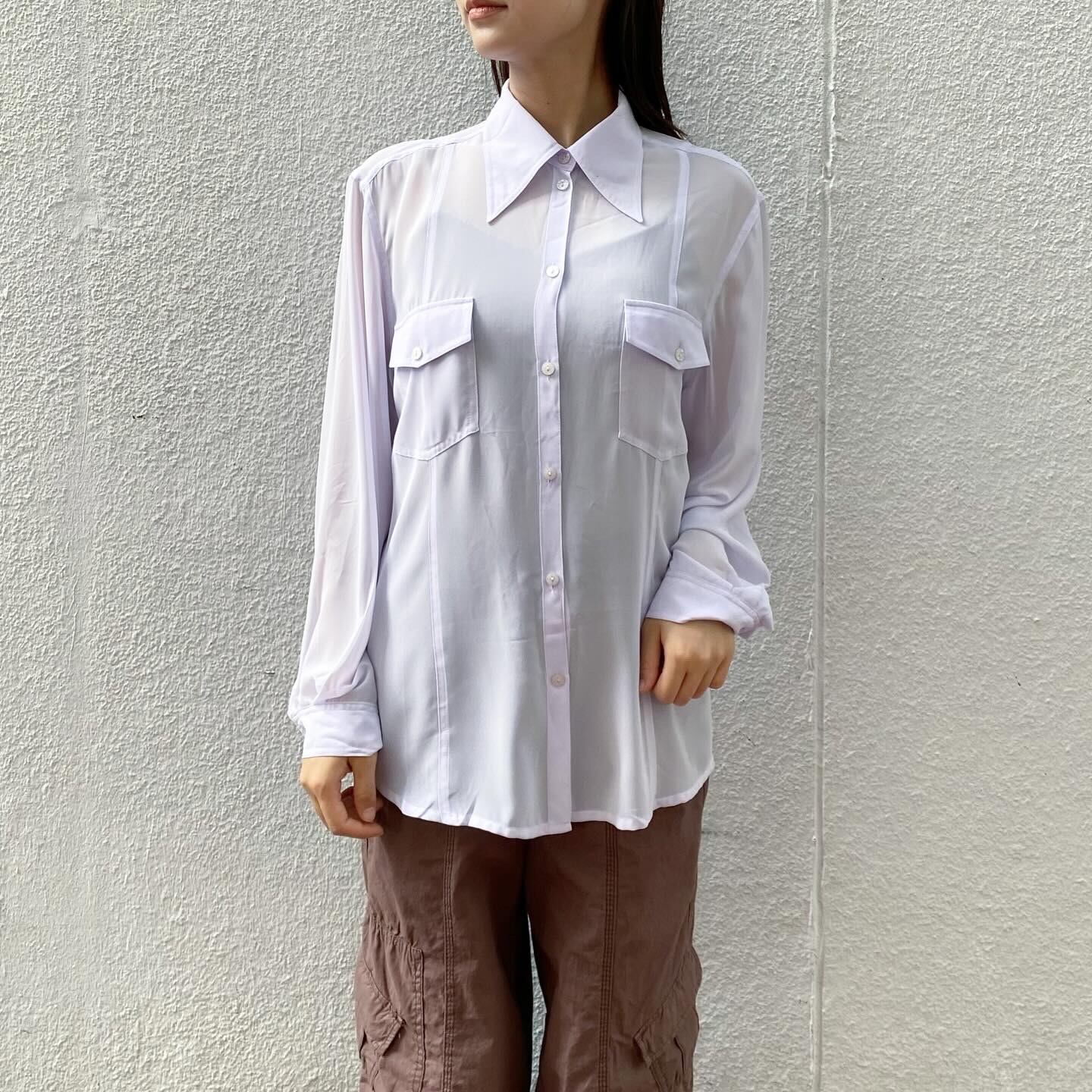 優しいパープルカラーの肌触り柔らかなシアーシャツです。