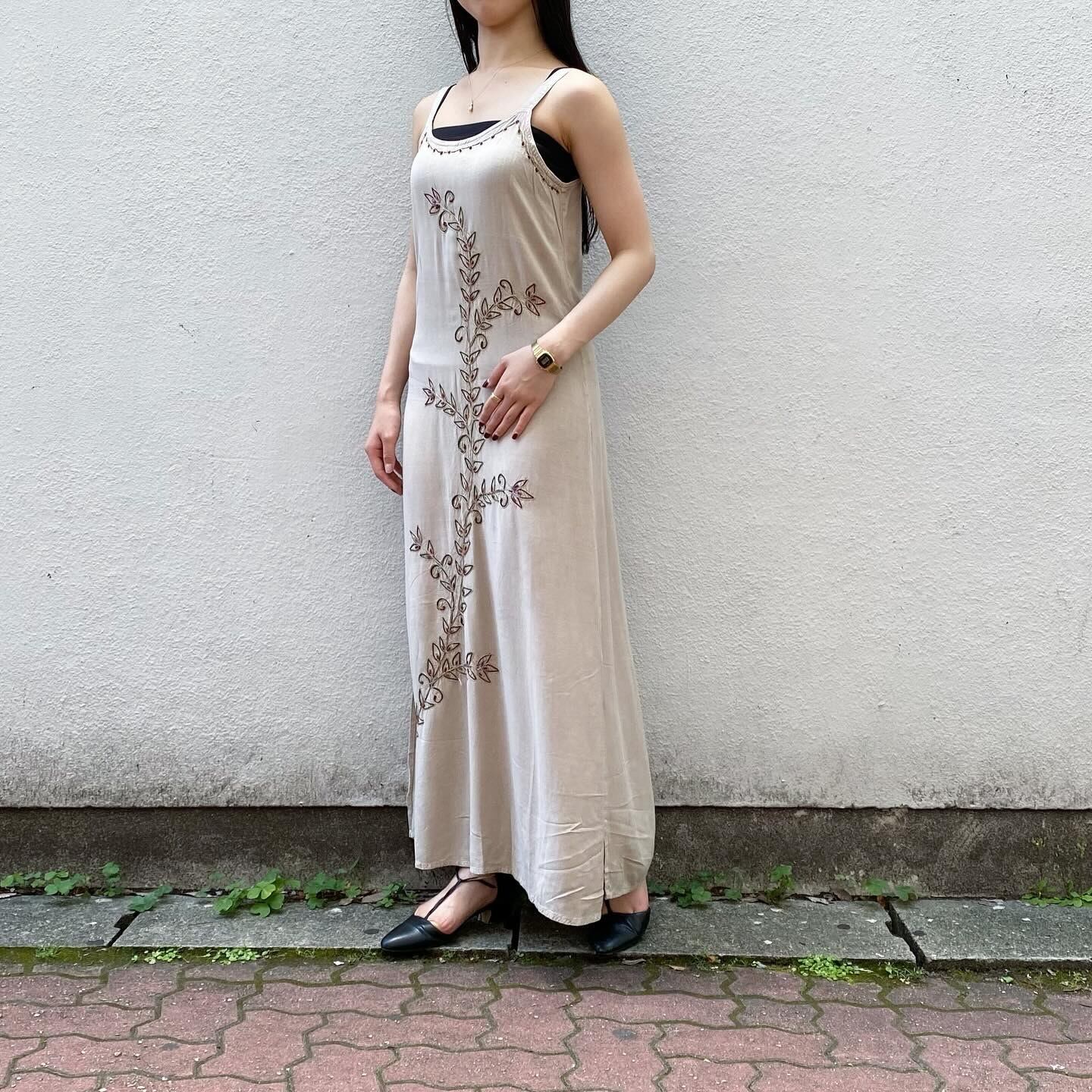 フロントの刺繍とビーズが存在感のあるワンピースです。
