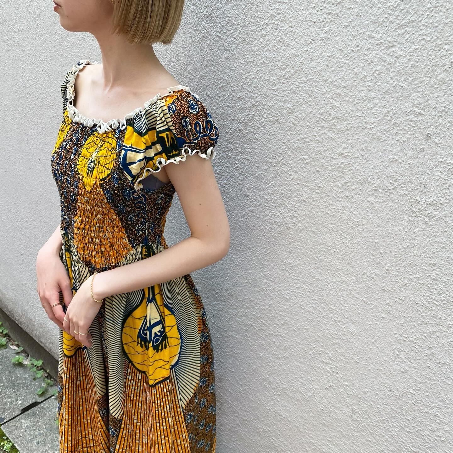 オレンジとブルーの配色が可愛いバティック柄ワンピースです。