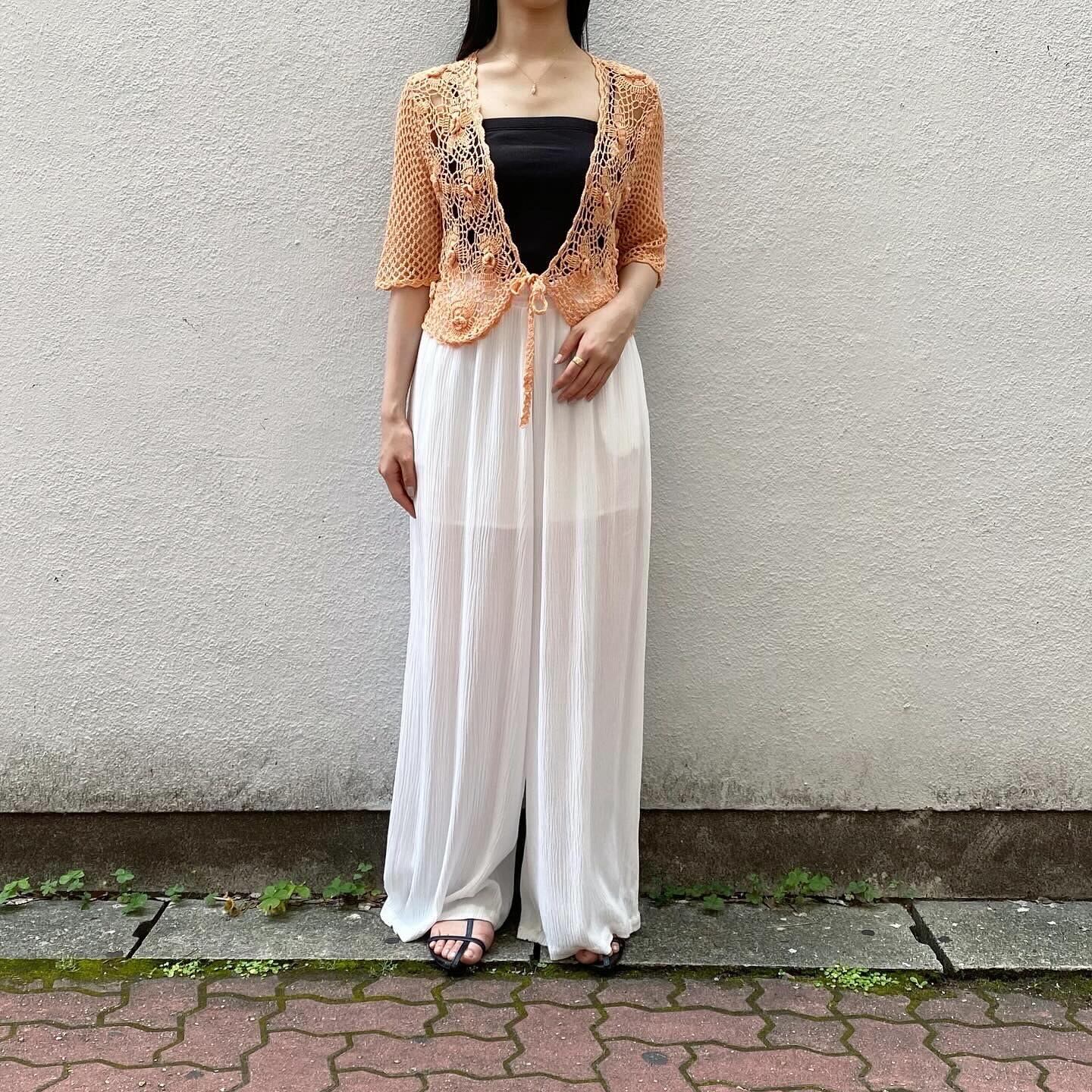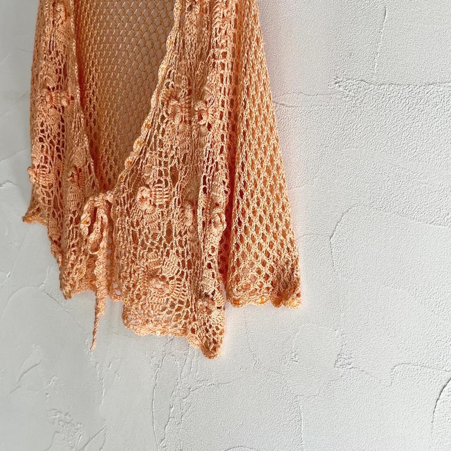 ポコポコとしたお花が可愛いクロシェカーディガンです。
