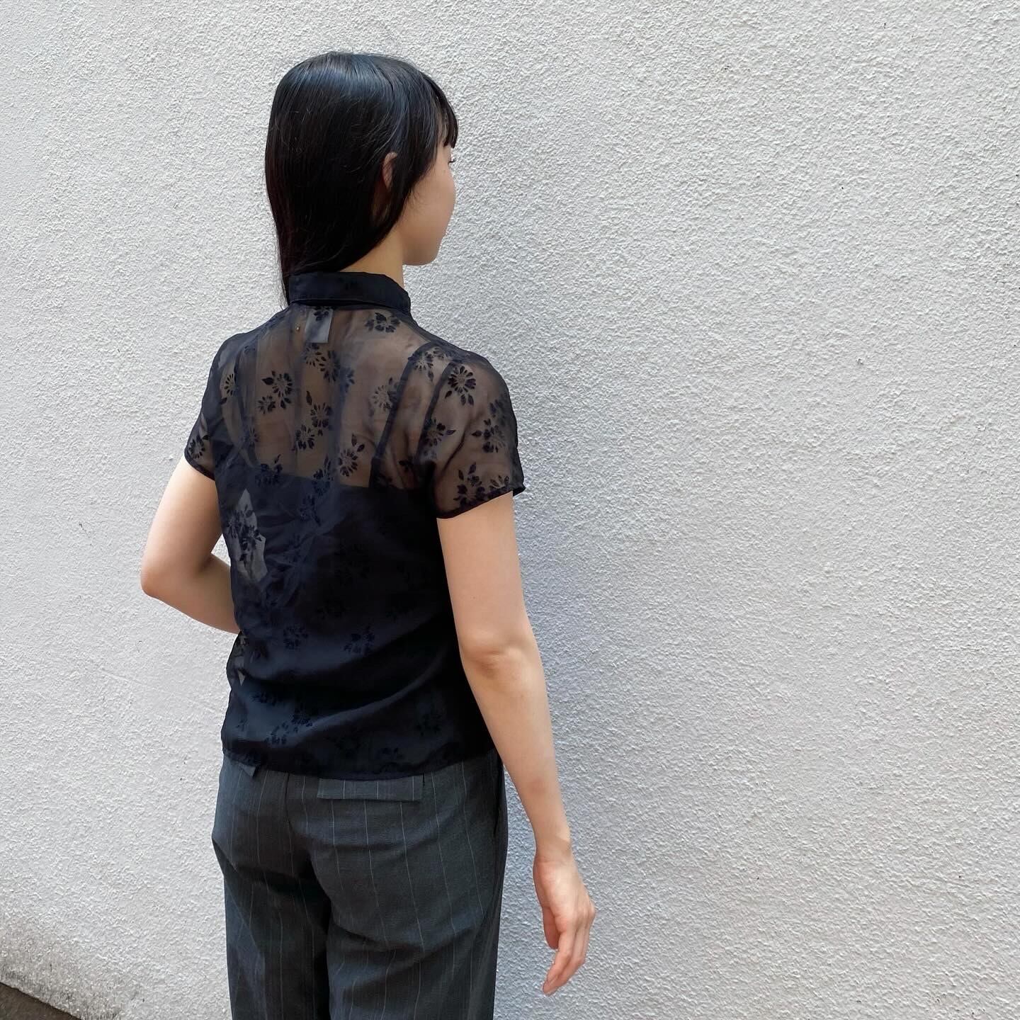 ベロア素材のお花模様が可愛いシアーシャツです。
