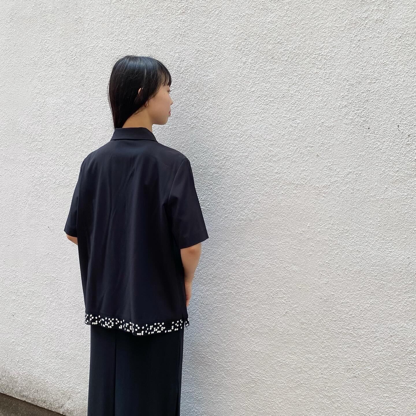 フロントのお花のボタンや、裾に散りばめられたお花の形のスパンコールが可愛いシャツです。