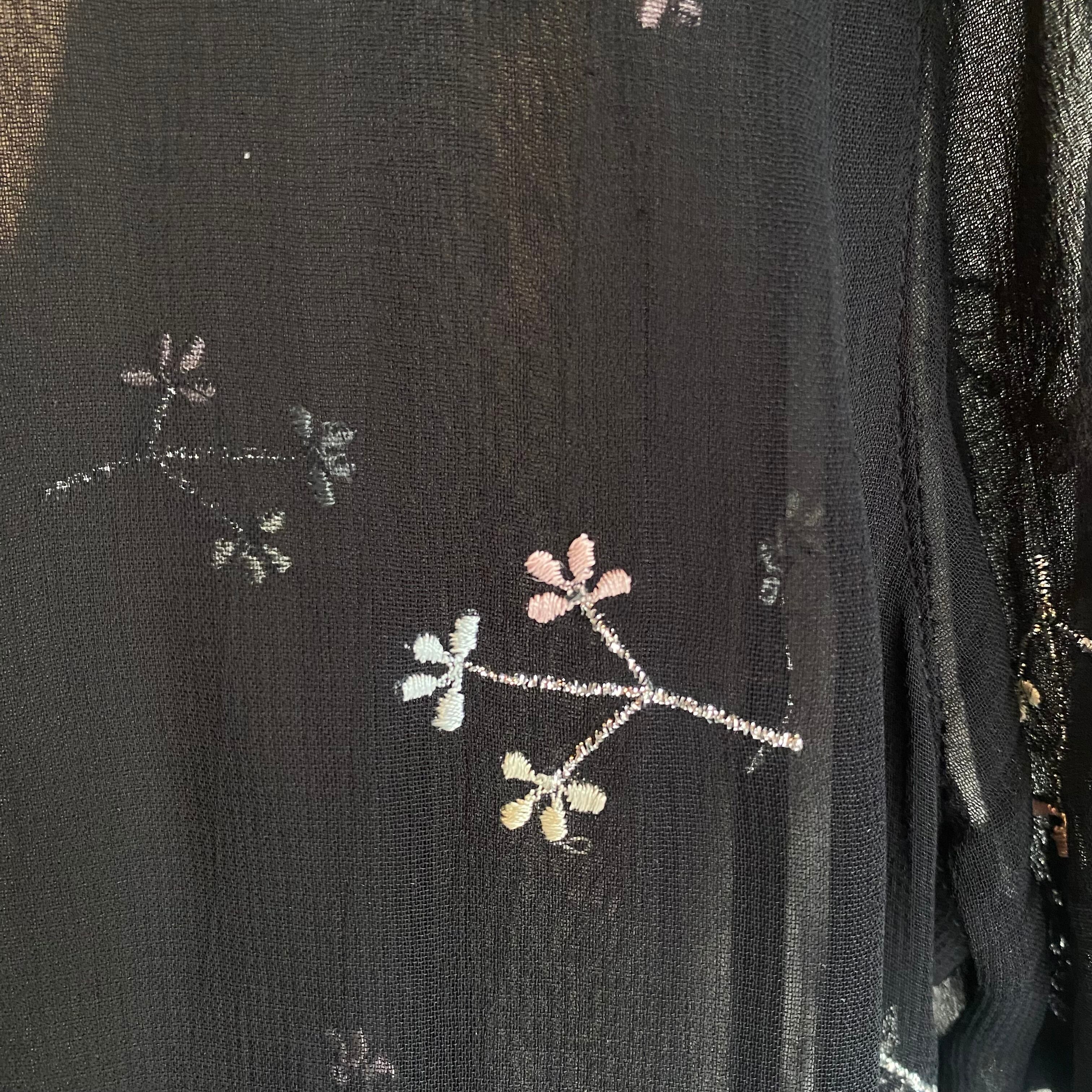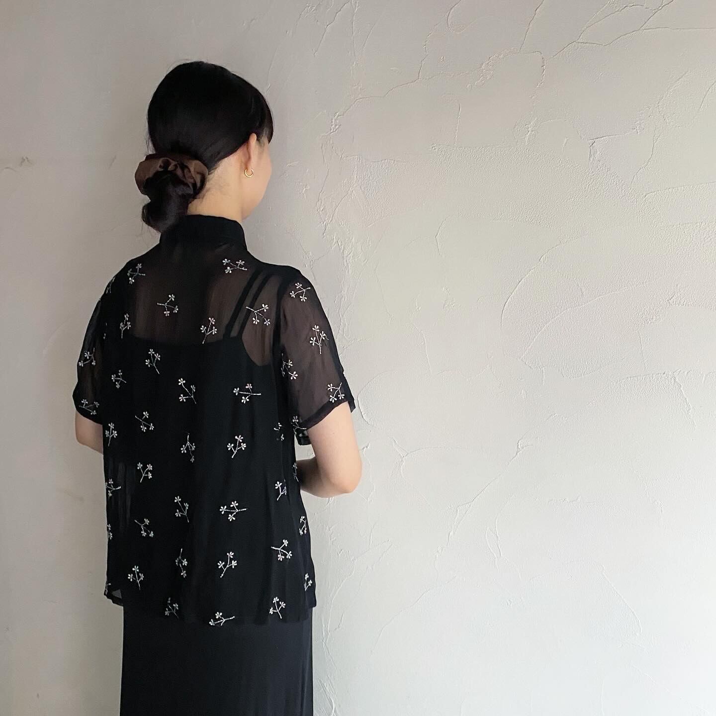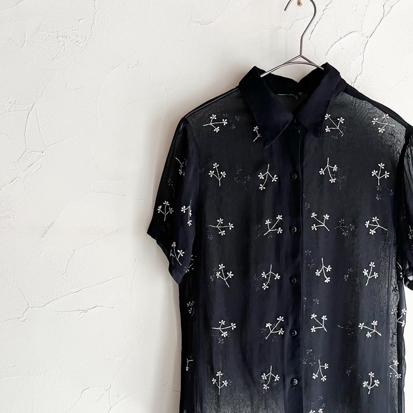 ラメ糸で刺繍されたお花が可愛らしいシアーシャツです。