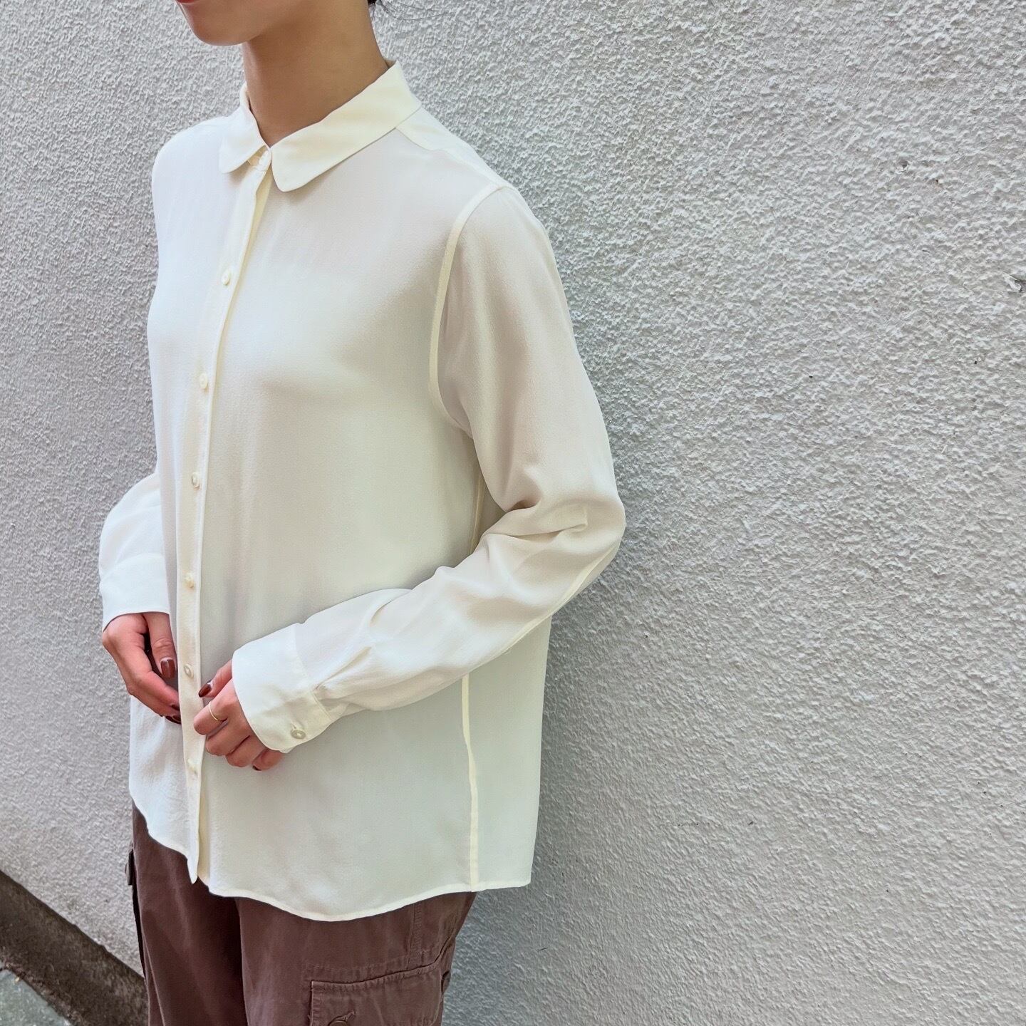 丸い襟や、シェルボタンなどディテールに拘った一着です。