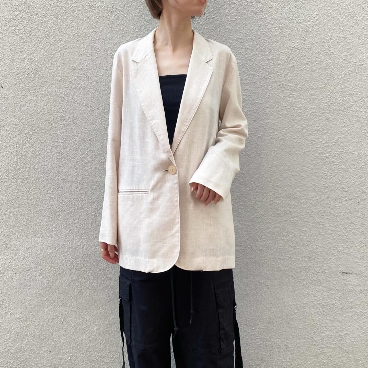裏地の無い軽くて柔らかい生地感のテーラードジャケットです。