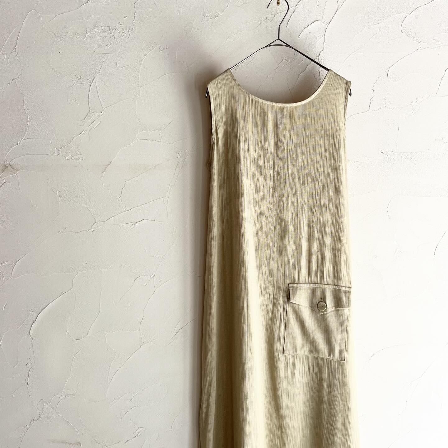 さらっとした軽くて涼しい生地感のマキシ丈ワンピースです。バックのボタンがポイントです。