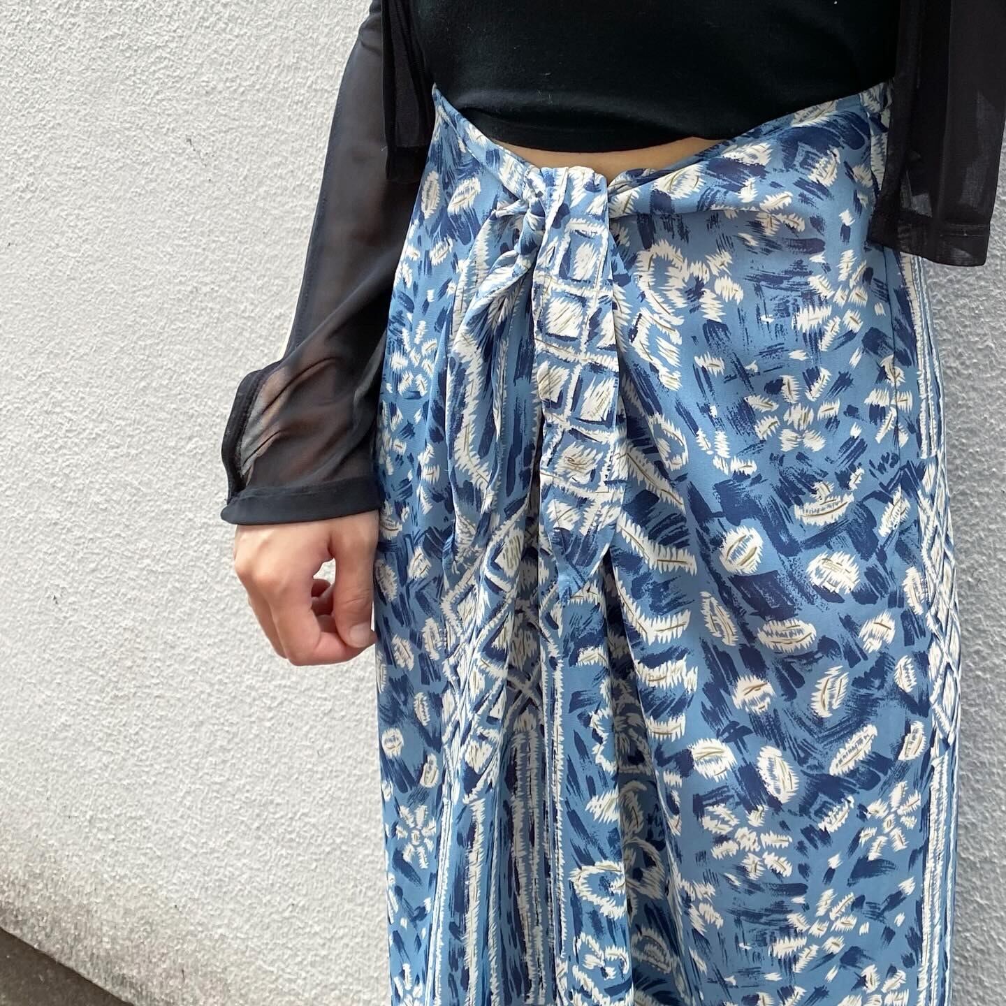 薄く軽い生地感で動きやすい、ワイドパンツです。ウエストが縛って絞れるため調節が簡単です。