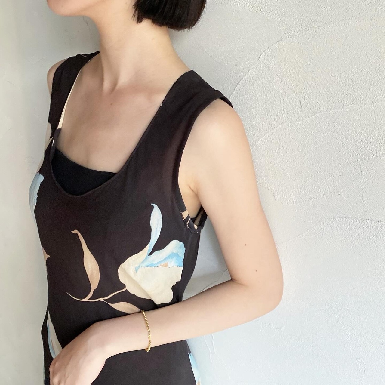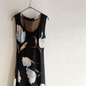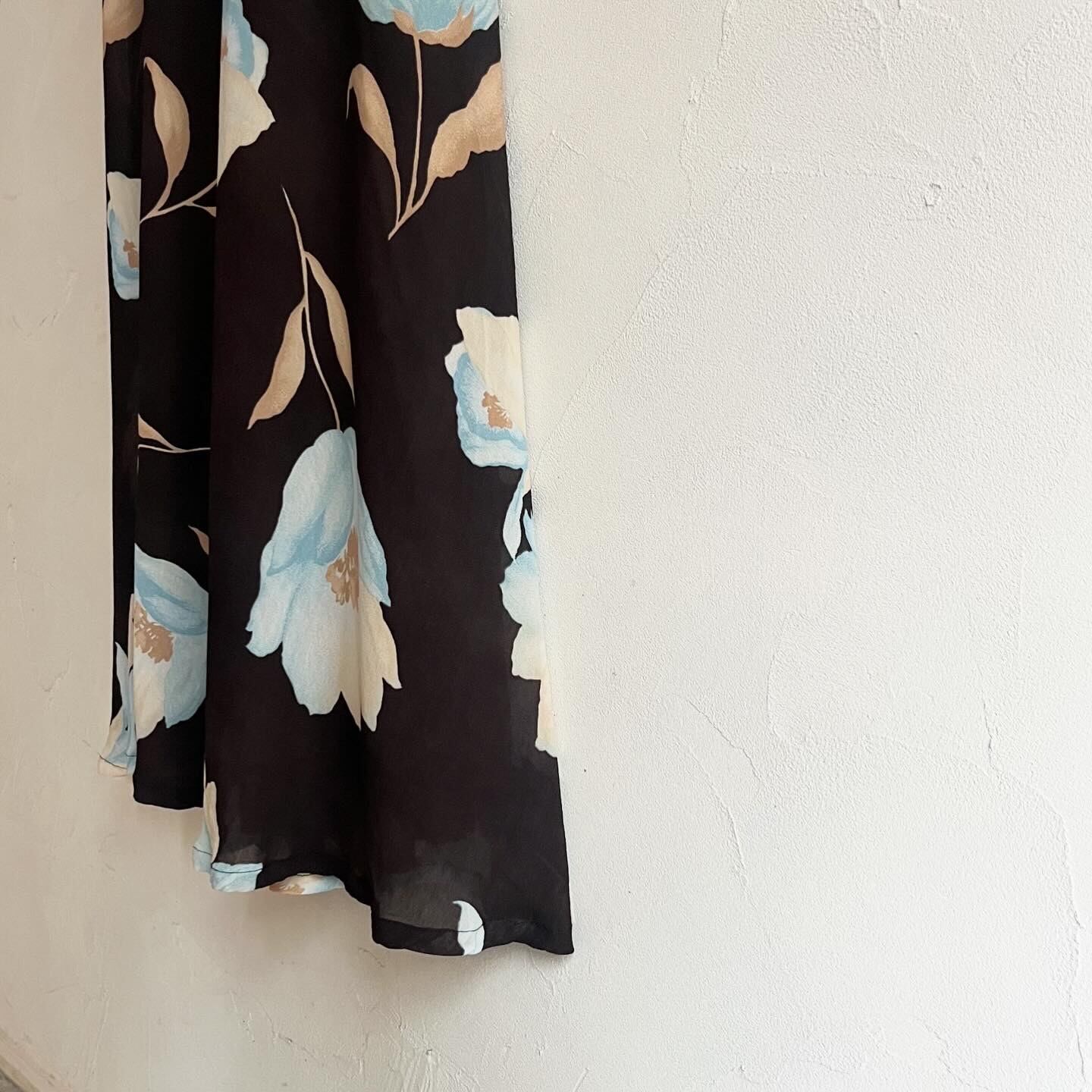 ブラウンとブルーの配色の素敵な花柄ワンピースです。