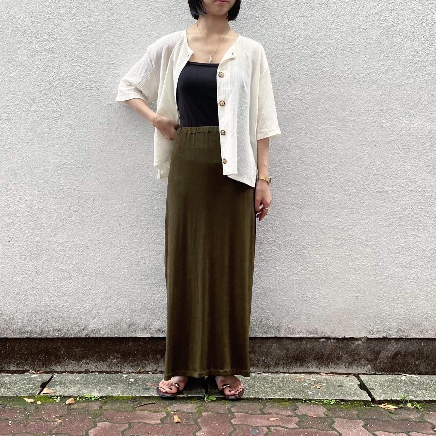 スパンデックス混の伸縮性のあるさらっとした生地感のスカートです。