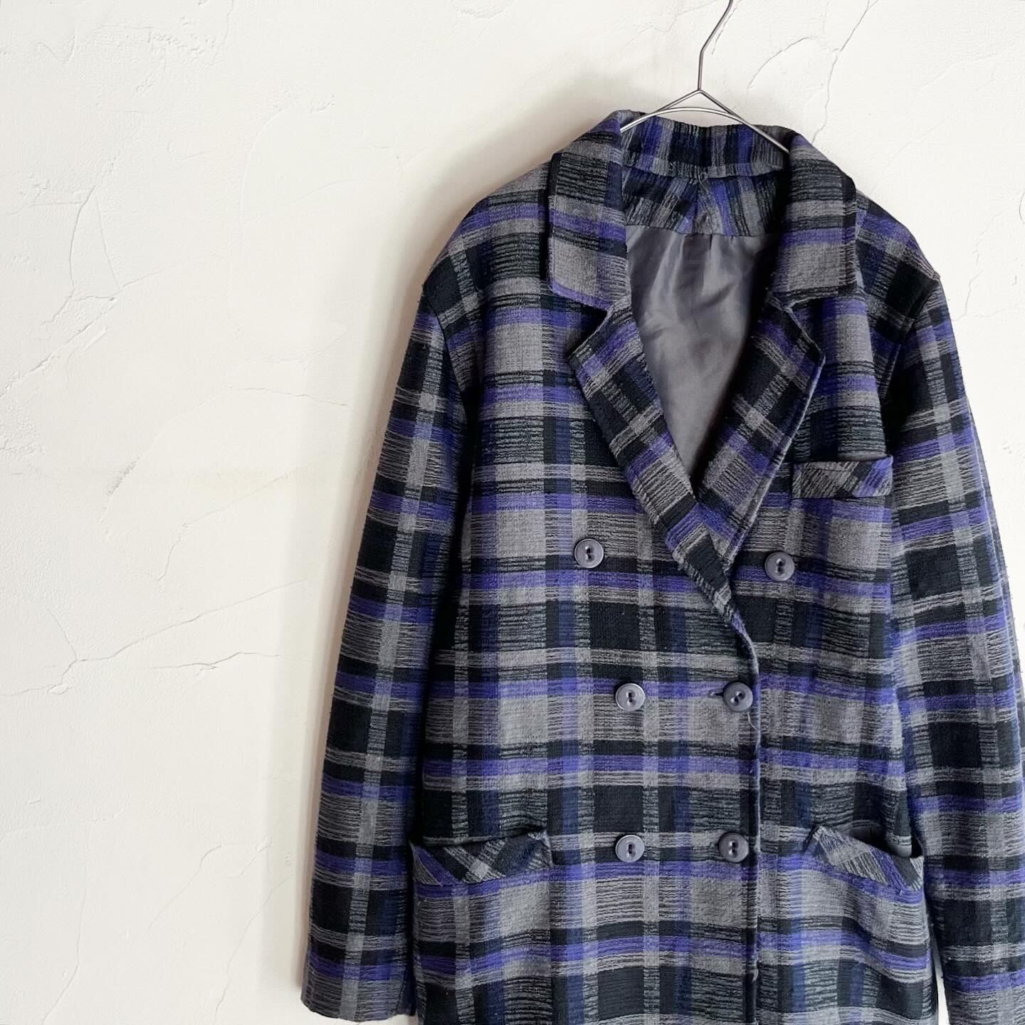 パープルとグレーのチェック柄の素敵なジャケットです。