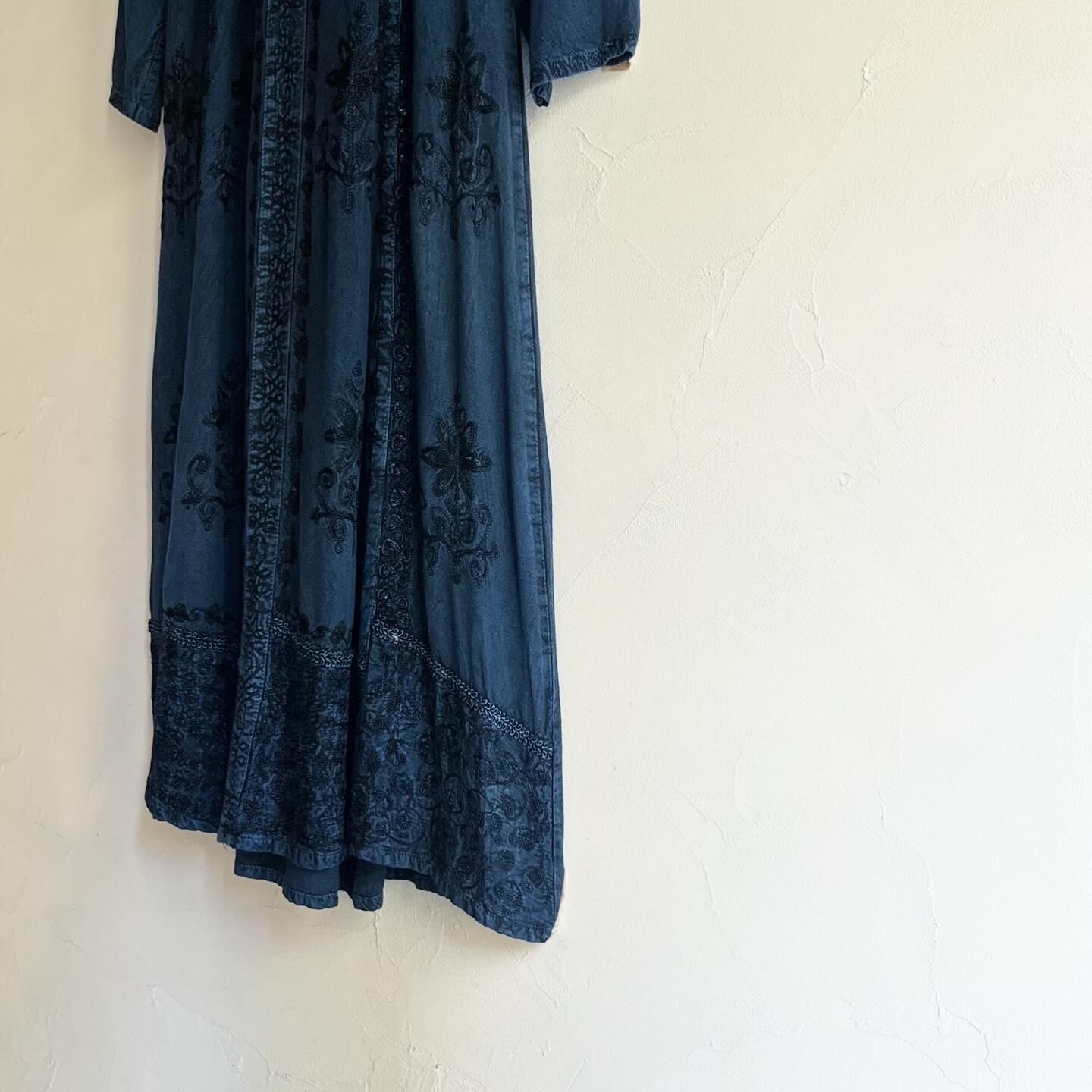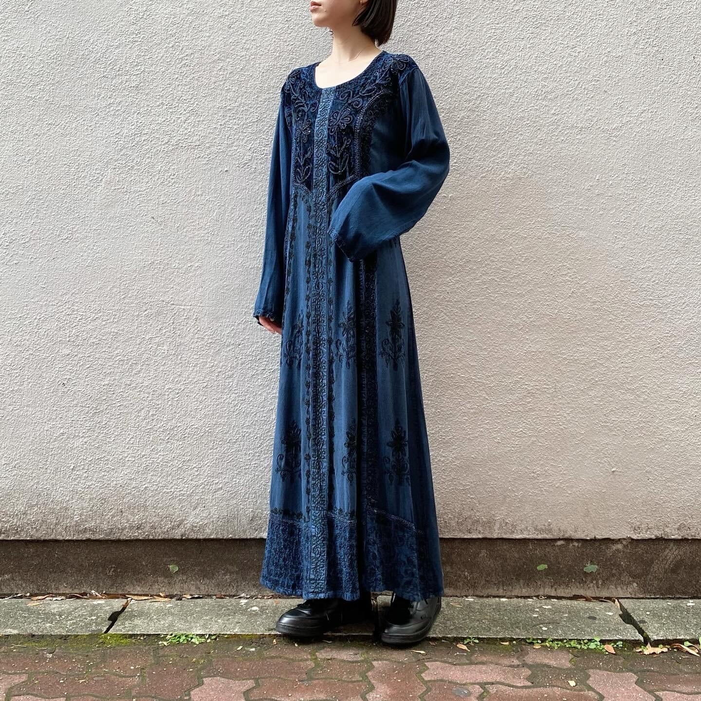 フロントの凹凸のある刺繍が美しいワンピースです。上部のみベルベット生地が使用されており品のある一着です。バックのリボンでシルエットが調節可能です。