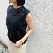 全体に施されたブラックのスパンコールが美しいニットトップスです。ウールの柔らかい生地に、裏地が付いています。