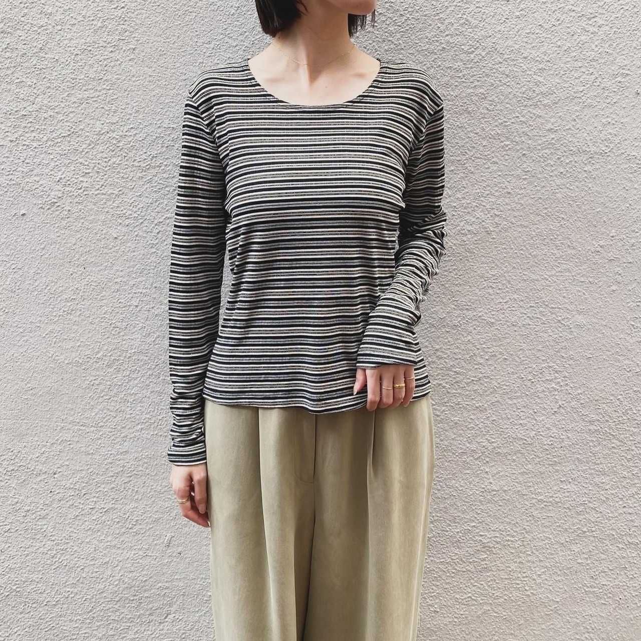 繊細なラメの煌めきの美しいボーダートップスです。