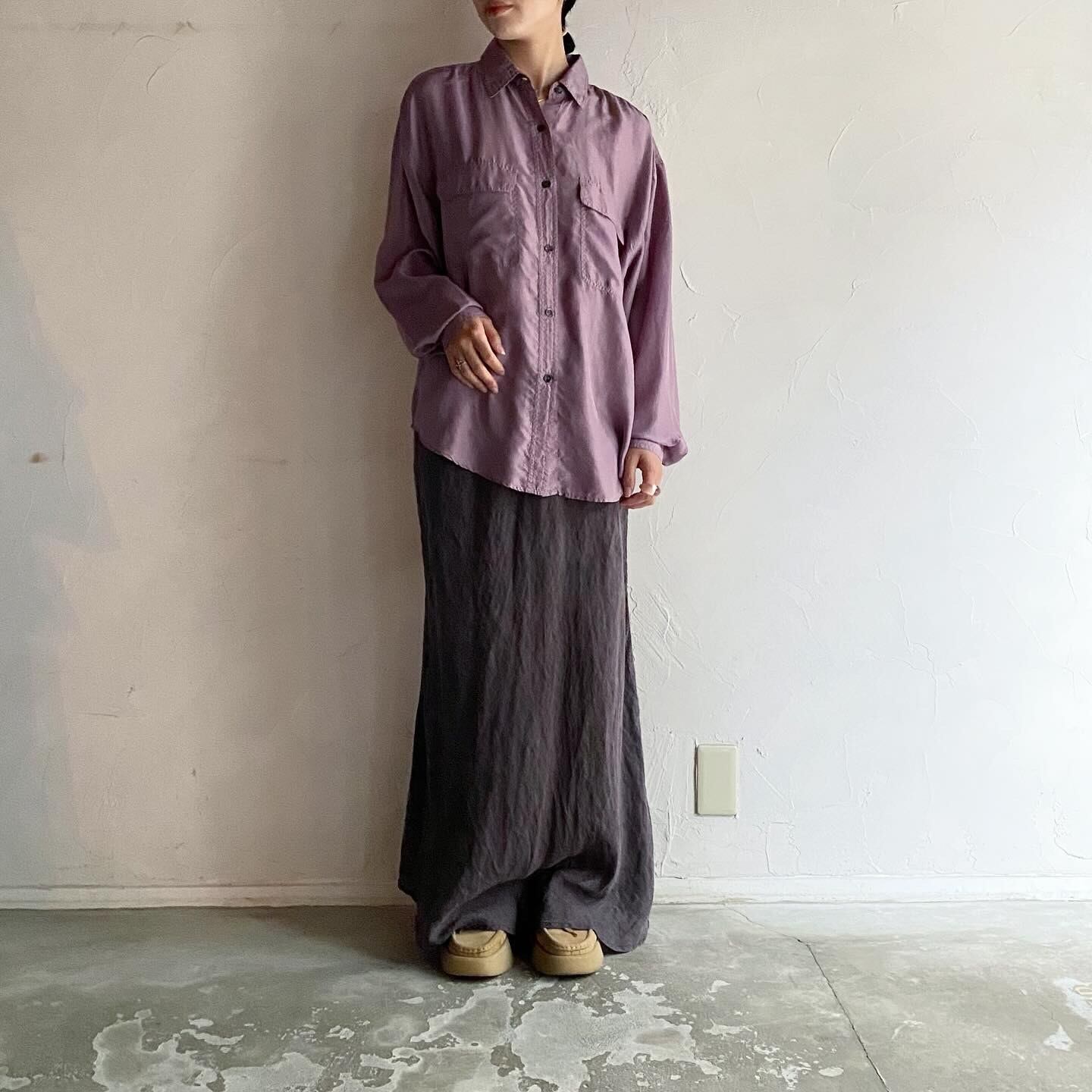 肌馴染みの良いパープルカラーのシルクシャツです。