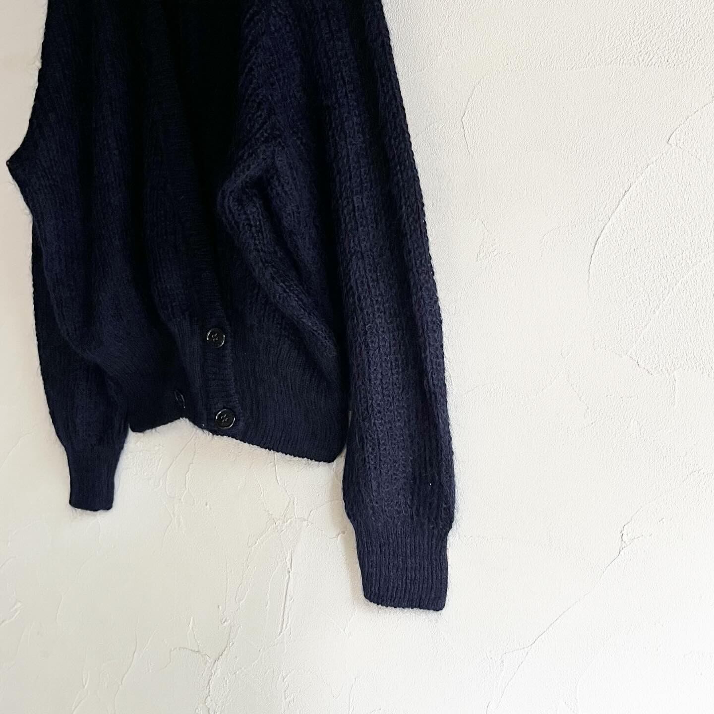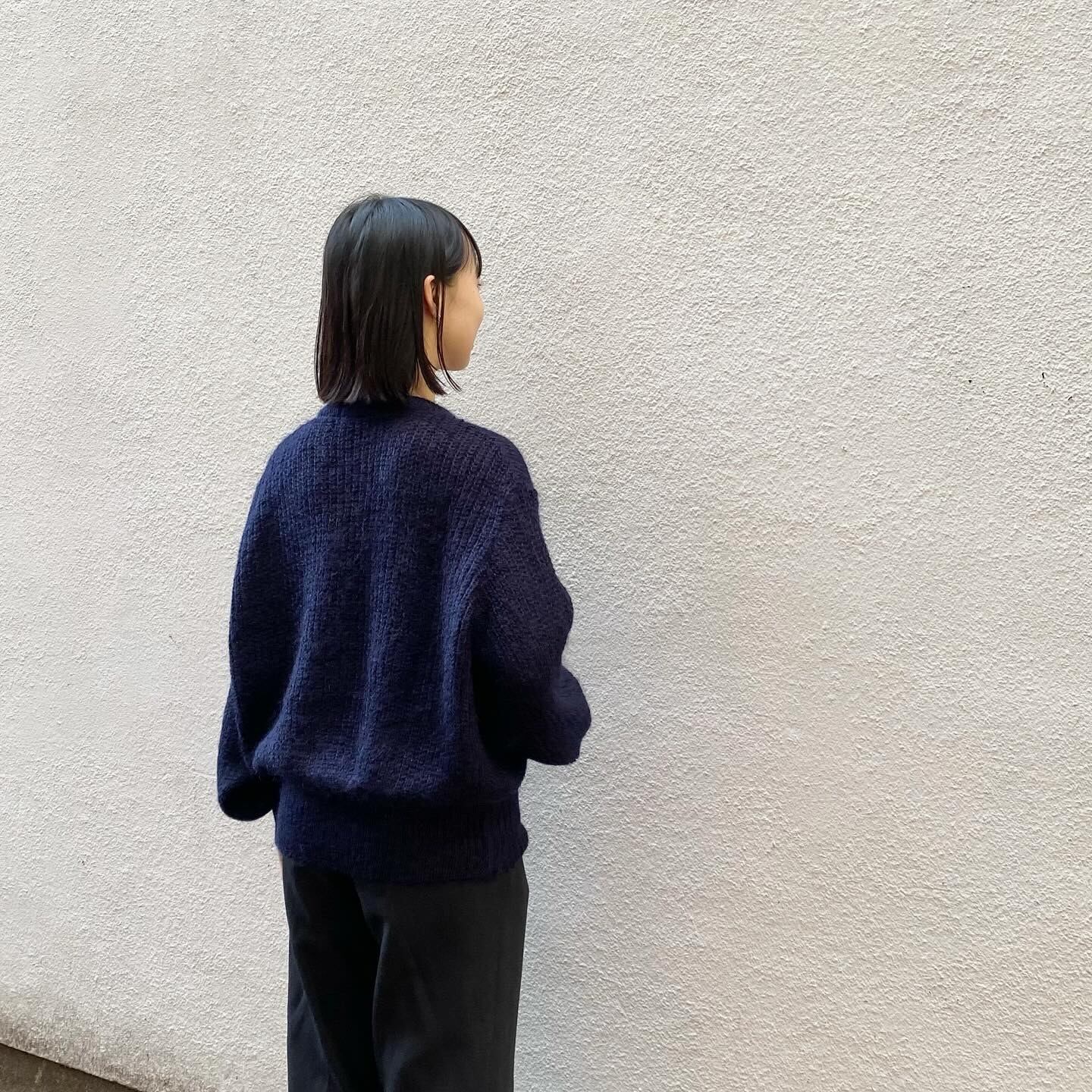 モヘアのふわふわとした生地感が可愛いカーディガンです。裾のダブルボタンが一癖あり可愛いです。